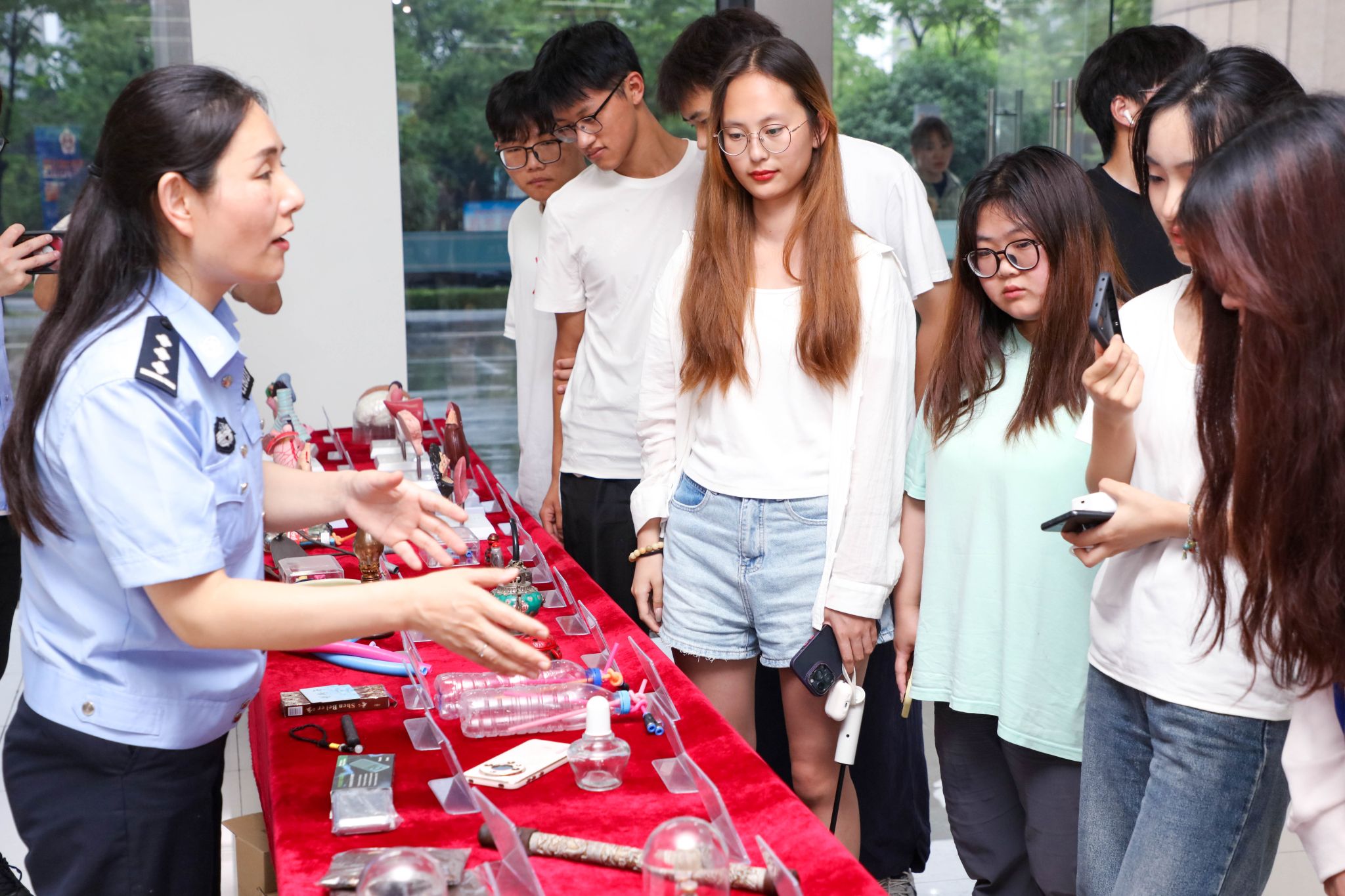 专题活动围绕禁毒、消防、反电诈、反恐等安全内容,精心安排了专题讲座、展板展示、发放宣传材料、有奖竞答、观看安全主题电影等环节。活动现场,李琳向师生展示了毒品仿真模型,介绍了新型毒品的形状特征,普及了禁毒知识,引导师生提高识毒、防毒和拒毒意识。“江宁婆婆”王海丁结合真实案例,深入浅出地讲解了AI换脸诈骗等新型电信网络诈骗的防范方式,提升了师生的识骗防骗能力。球王会平安志愿者代表进行了庄严宣誓,表达了用心守护校园、共建平安校园的决心。师生还集体观看了禁毒主题电影《生死下一秒》。