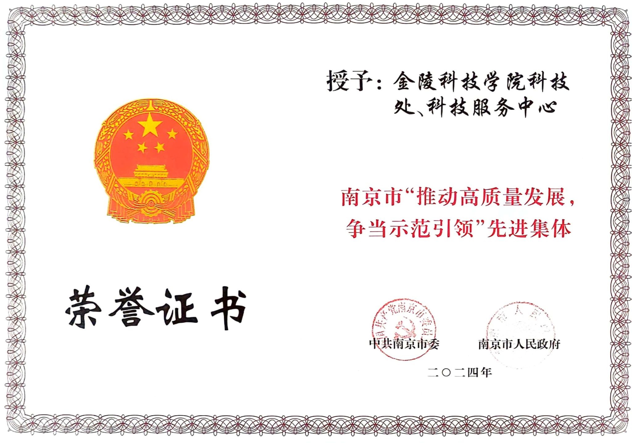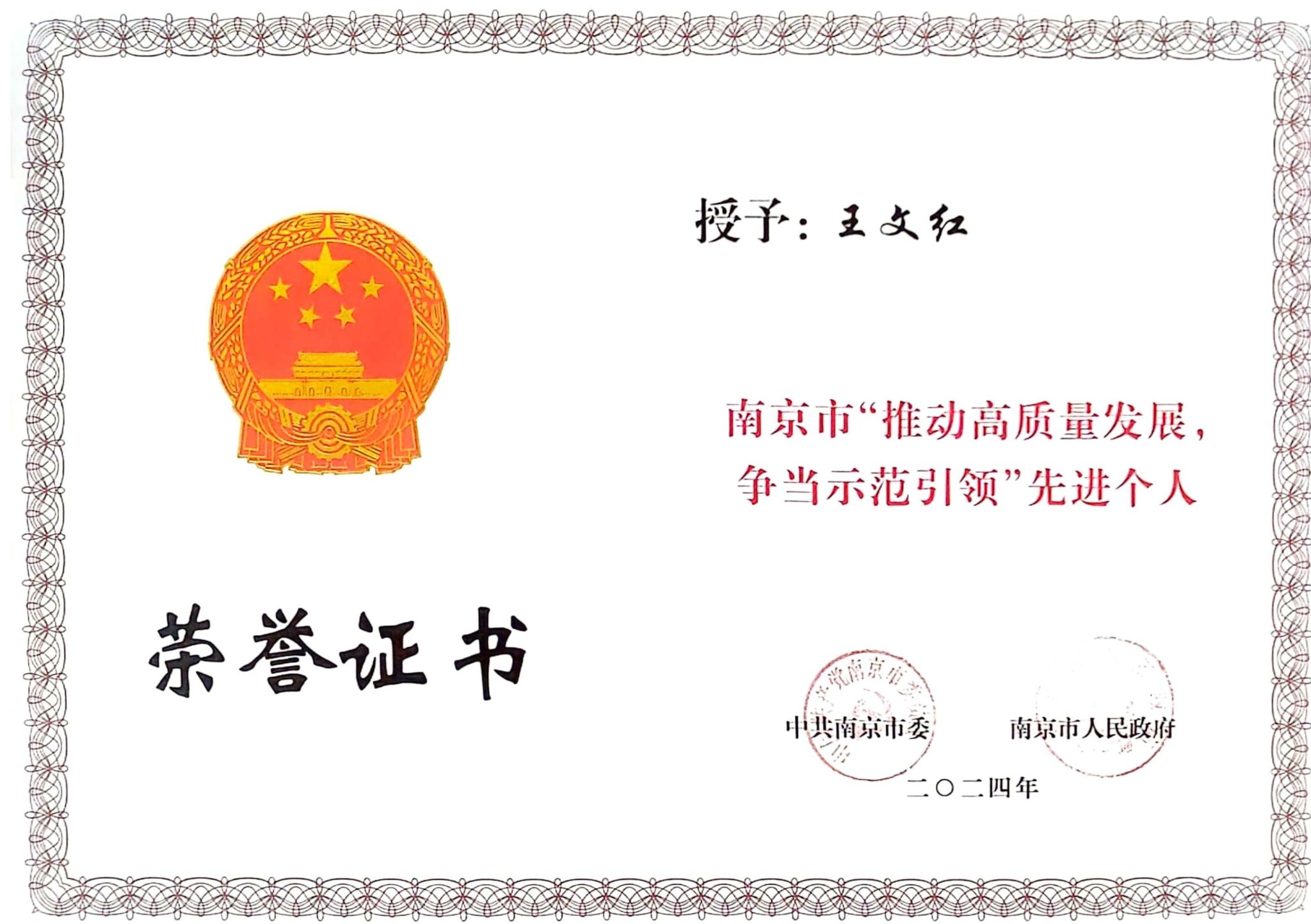 根据南京市人社局下发的《关于表彰南京市“推动高质量发展,争当示范引领”先进集体和先进个人的决定》(宁委发[2024]13号),球王会科技处、科技服务中心获评南京市“推动高质量发展,争当示范引领”先进集体,财务处处长王文红获评南京市“推动高质量发展,争当示范引领”先进个人。