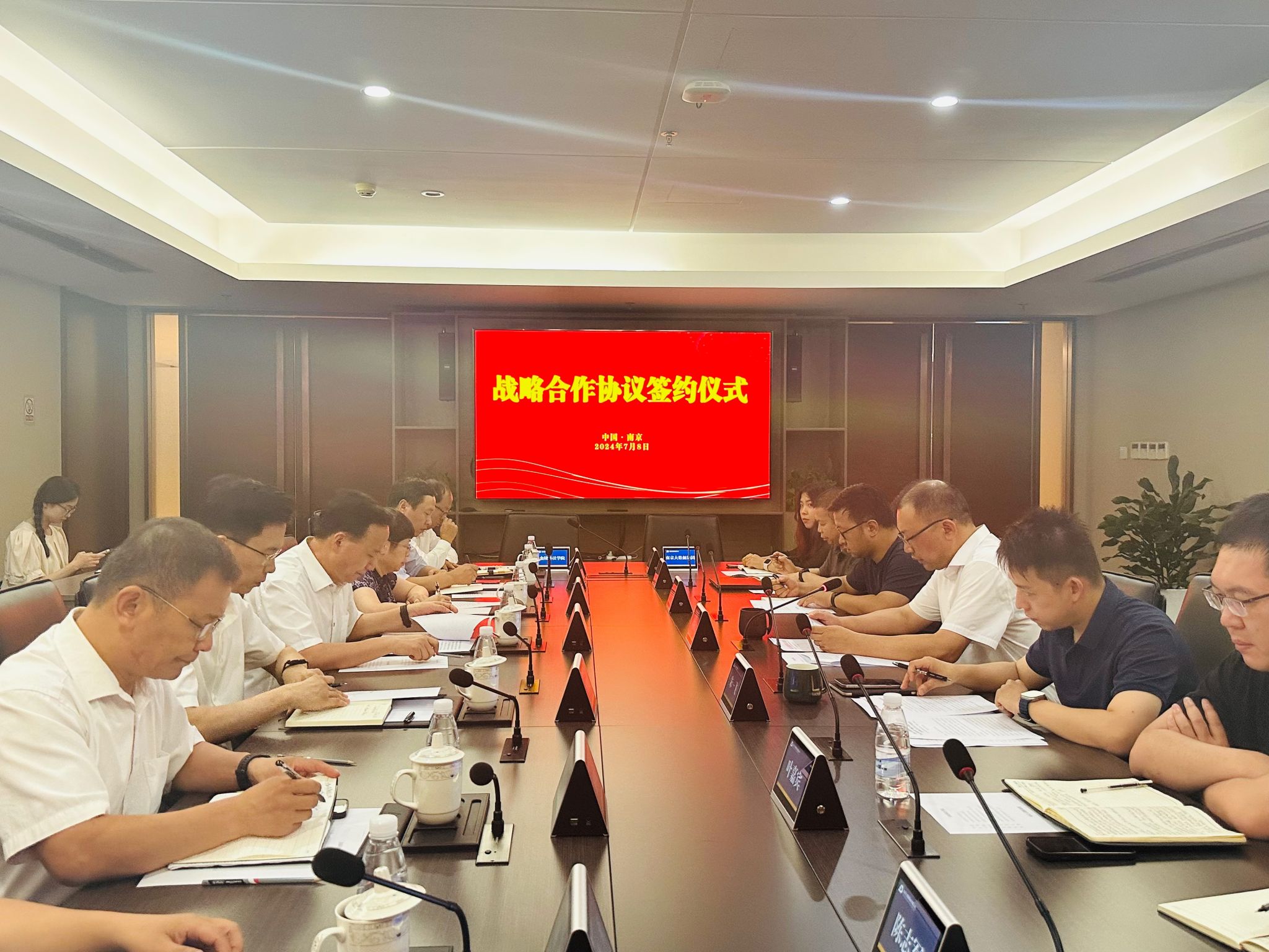 7月8日,校长刘永彪带领副校长张燕、副校长叶智锐及校长办公室,教务处,党委宣传部、新闻中心,软件工程学院,计算机工程学院,网络安全学院等部门(学院)主要负责人到南京大数据集团有限公司签订合作共建协议并开展访企拓岗促就业活动。南京大数据集团有限公司党委书记、董事长许扬汶,党委委员朱一飞及数据安全部、智慧城市事业部、技术研发部、南京大数据检测技术有限公司等相关部门负责人参加活动。