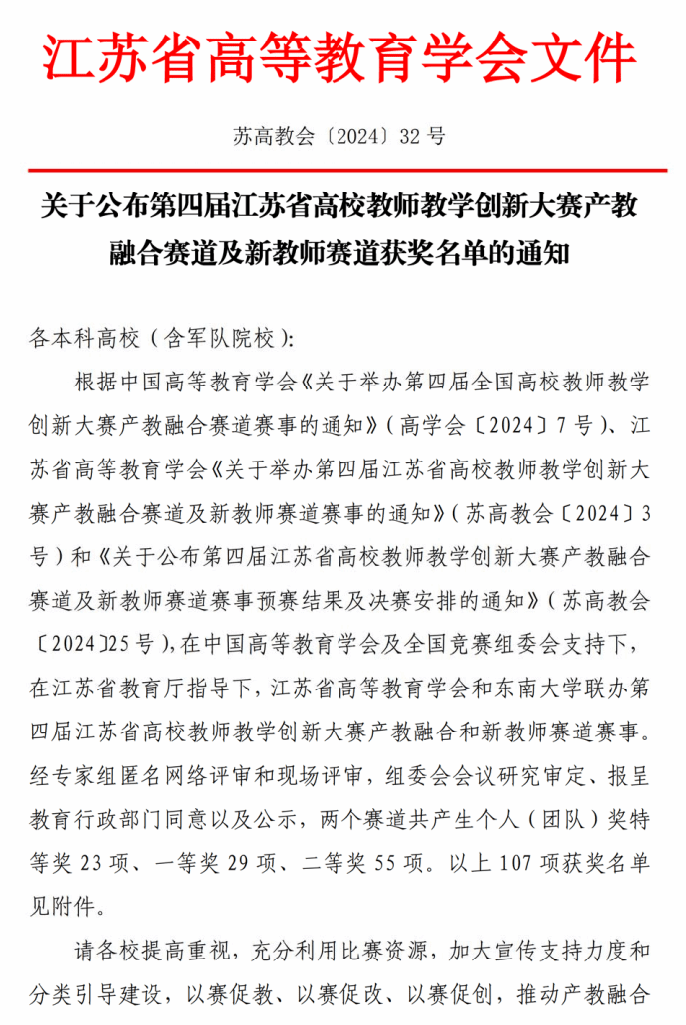 日前,江苏省高等教育学会正式公布评审结果(苏高教会〔2024〕15号、苏高教会〔2024〕32号文),球王会在第四届江苏省高校教师教学创新大赛(本科)暨第四届全国高校教师教学创新大赛选拔赛、第四届江苏省高校教师教学创新大赛产教融合赛道及新教师赛道中喜获佳绩。艺术学院范丽、建筑工程学院李恩康、机电工程学院智淑亚、理学院朱心阳4位老师经过激烈角逐后,分别荣获产教融合赛道一等奖、新教师赛道一等奖、正高组二等奖、中级及以下组二等奖。