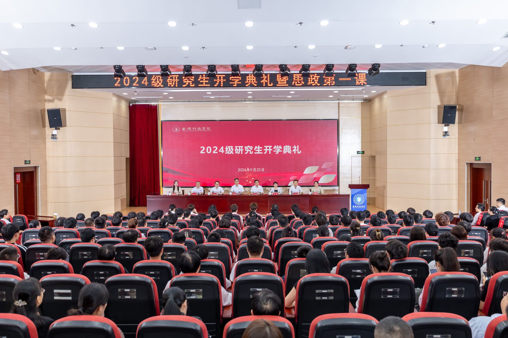 学校相关职能部门主要负责人、各专硕点牵头学院党政负责人、研究生公共课教学单位负责人、2024级研究生导师、研究生任课教师代表、研究生秘书、研究生辅导员以及2024级全体研究生参加了开学典礼。