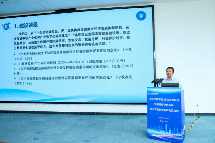 球王会与南京市数据局、江宁高新区三方共建的南京数据创新研究院,是南京市全面落实《中共中央国务院关于构建数据基础制度更好发挥数据要素作用的意见》文件精神,推进数据要素优质供给、高效流通、安全发展,实现数据要素市场化配置的先行示范;也是学校加强“政校城、行教企”融合发展,聚焦南京“4266”产业体系,加快打造优势产业集群,加快培育新质生产力的重要实践。三方将不断深化在数字南京建设规划、数据资源共享流通、数字科技开发应用、数据安全等方面的合作,携“数”同行,向“新”深耕,为助力南京成为影响江苏、辐射全国的数据创新高地,推动南京数字经济高质量发展提供有力支撑。