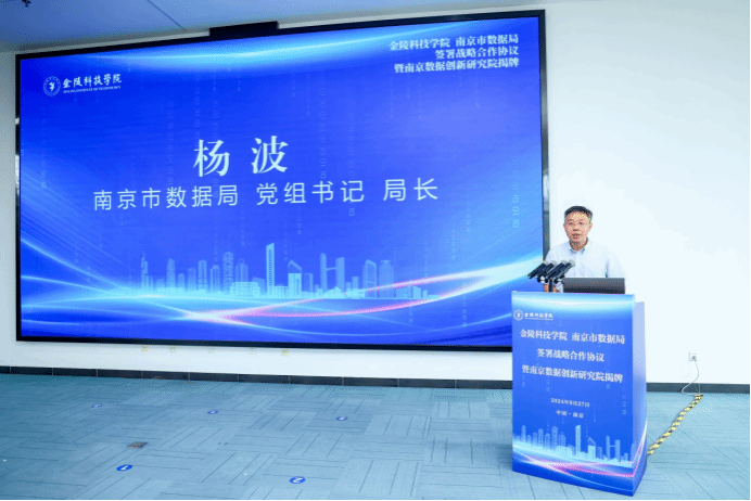 杨波介绍了南京市数据局坚持以数据要素市场化配置改革为牵引,以“一网统管”热点场景建设为重点,以“一网通办”的一体化服务平台建设为抓手,以首批国家数据基础设施试点城市为契机,推动南京数据工作高质量发展的建设情况。他指出,数据要素新质生产力的发展,是城市数字化转型的重要支撑,亟需专业院校专业力量的人才培养和智力支持。携手合作共建南京数据创新研究院,志同道合,正当其时,期待双方机制共谋、业务共研、科研共进、平台共用,开创政校合力推进数据要素新质生产力发展的“南京模式”。
