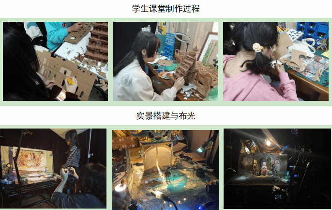 《敦煌·万物的呼唤》的筹划、制作与拍摄均在动漫学院7107定格动画实验室进行。同学们利用课上和课余时间,进行课程作业拍摄和完善,最终完成了一次与敦煌的对话。《定格动画》课程教学始终秉持以思政主题创作为引导,结合学生特质,以组队形式进行团队创作,从确定选题、搜集素材到制作模型,再到搭建实景与布光拍摄,师生们进行了创意的碰撞。