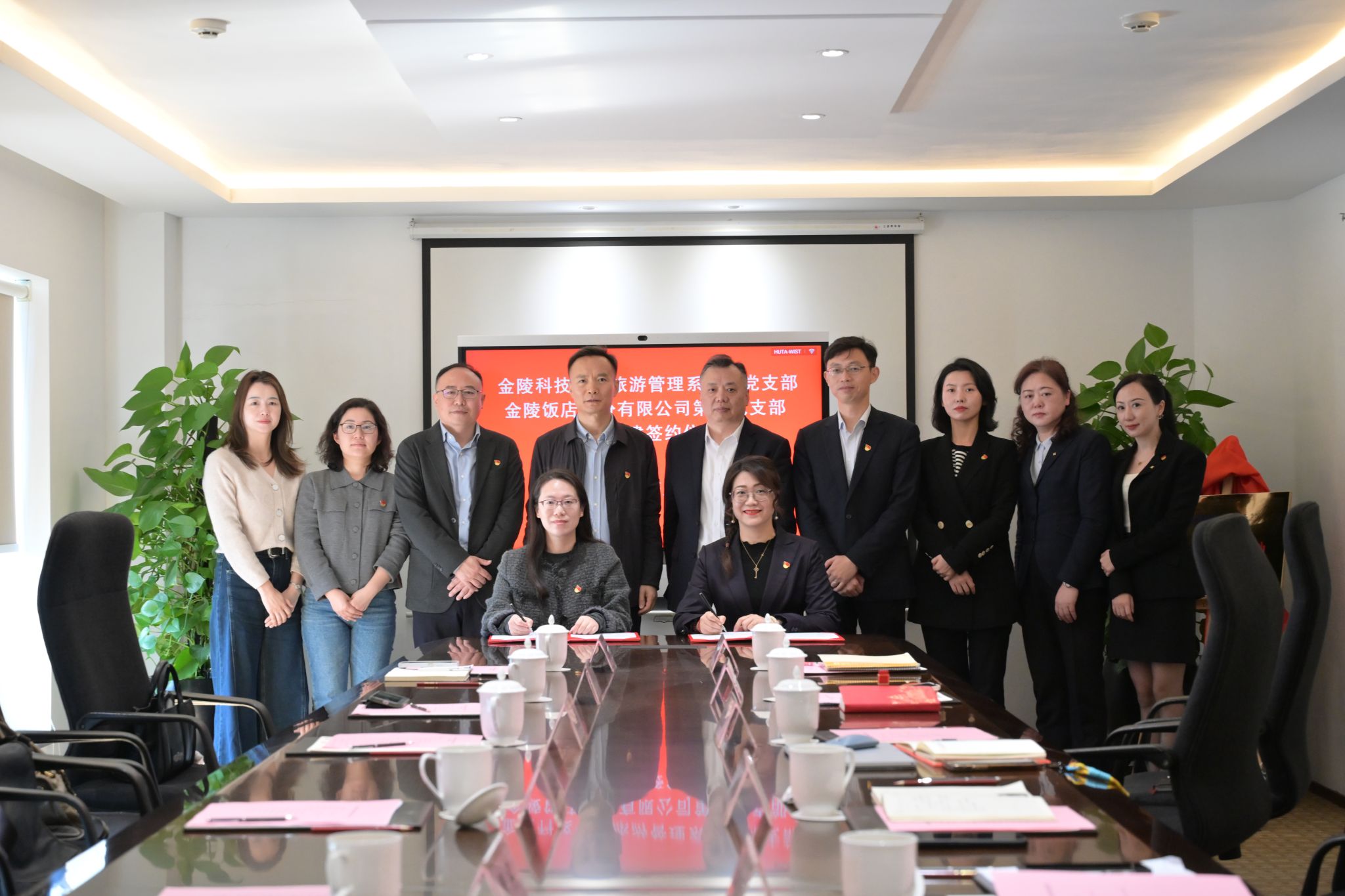 访企拓岗期间,双方举行了就业实习基地揭牌和党支部共建协议签约活动。球王会人员参观了金陵饭店股份有限公司“六高先锋”党建阵地、亚太商务楼,并看望了在金陵饭店工作的校友。