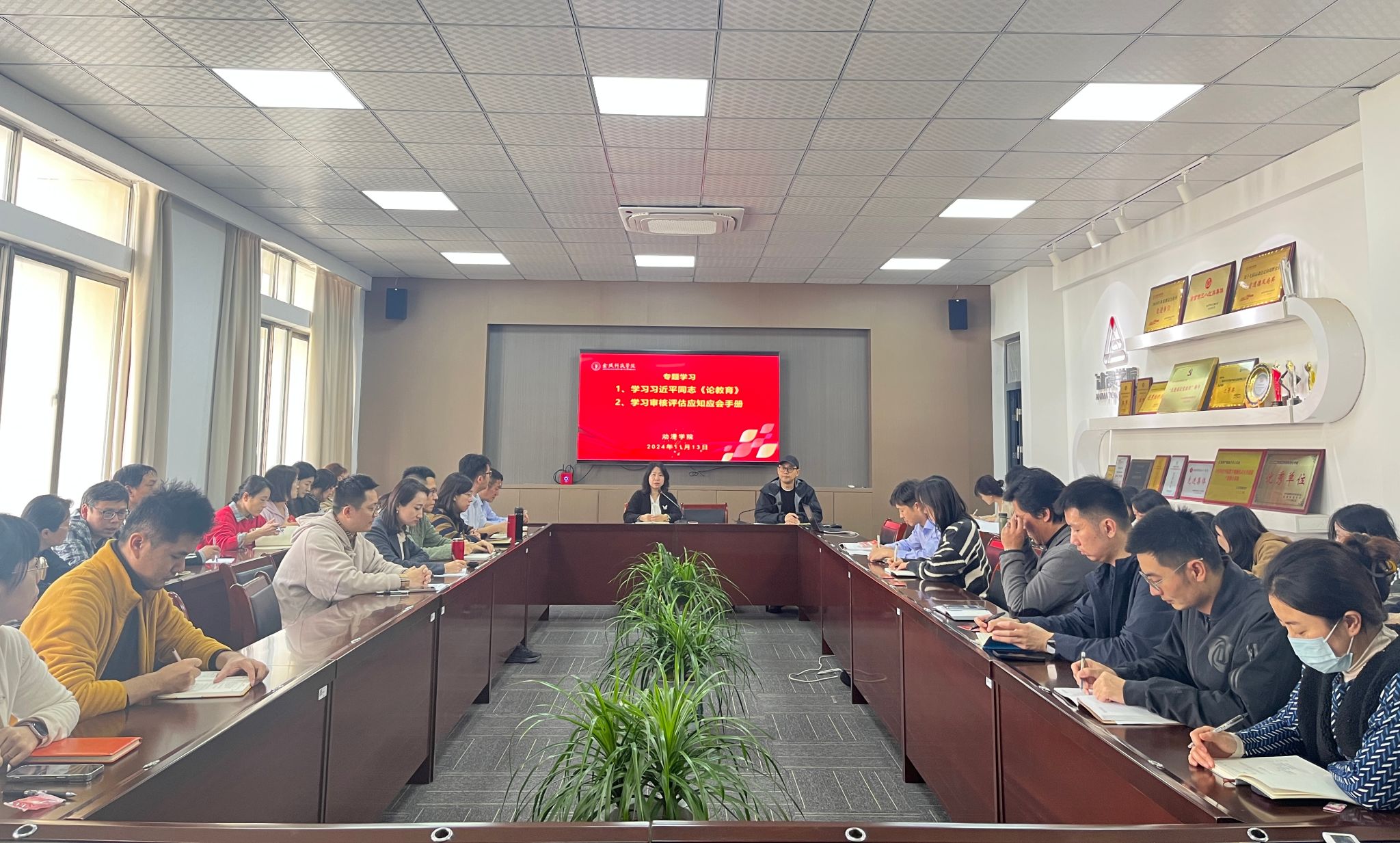 学习会上,广大教职工还学习了《球王会体育官方网站新一轮本科教育教学审核评估应知应会手册》,深刻领会了以评促建、以评促改、以评促管、以评促强对学校高质量发展的重大意义,系统掌握了新一轮本科教育教学审核评估的指导思想、指标体系、突出特点、迎评要求等内容。大家表示,一定要提高站位,明确职责,在学校的统一部署下,坚持教书育人、管理育人、服务育人,以实际行动服务本科教育教学,服务人才培养,为学校圆满完成各项评估任务贡献力量。