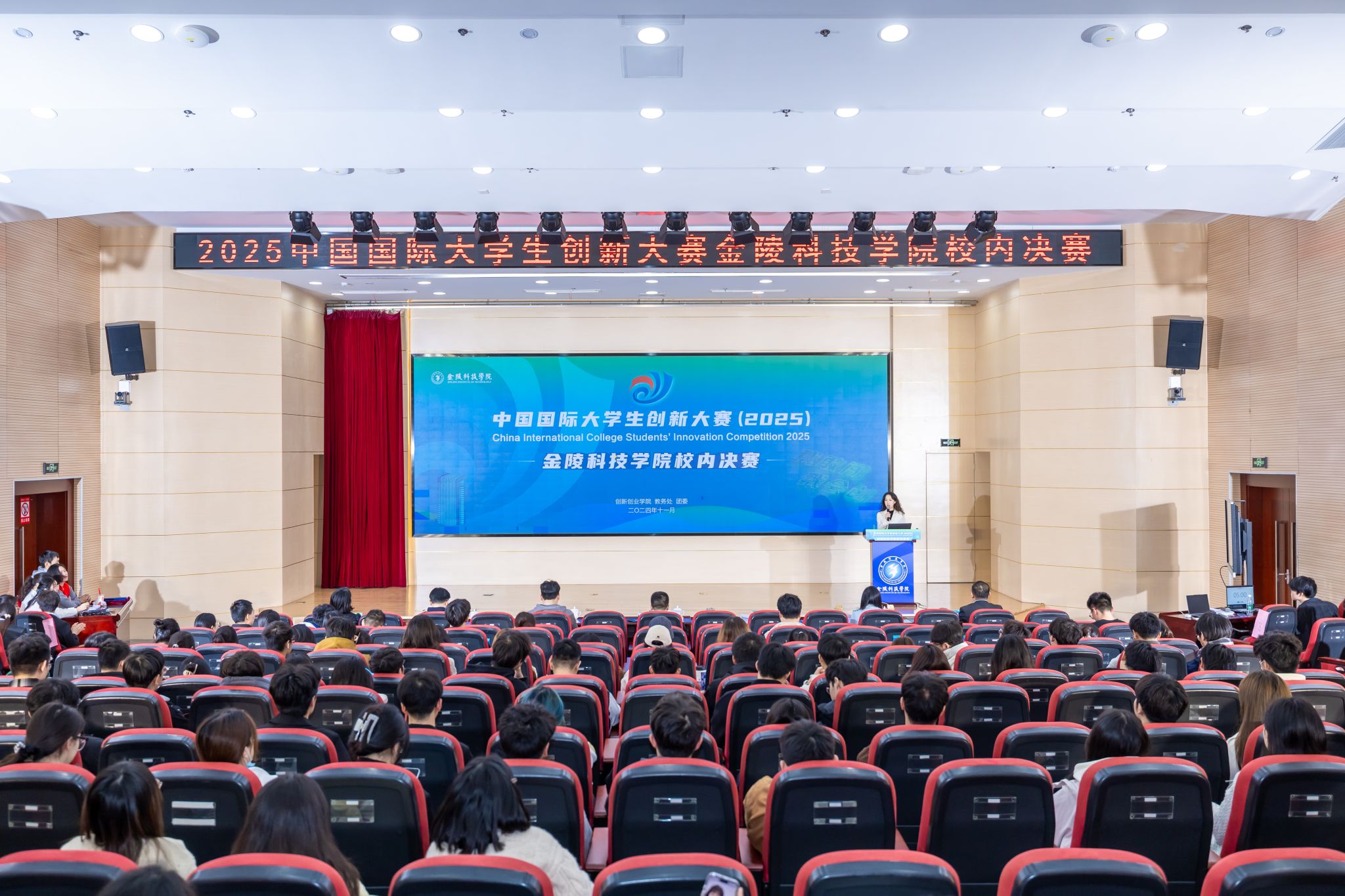 11月20日,球王会中国国际大学生创新大赛(2025)校内决赛在江宁校区科技楼报告厅举办。大赛由创新创业学院、教务处、团委主办,邀请校外创新创业指导专家、杰出企业家、风险投资机构负责人等担任评审团成员。学校相关部门主要负责人、近300名师生代表观摩赛事。