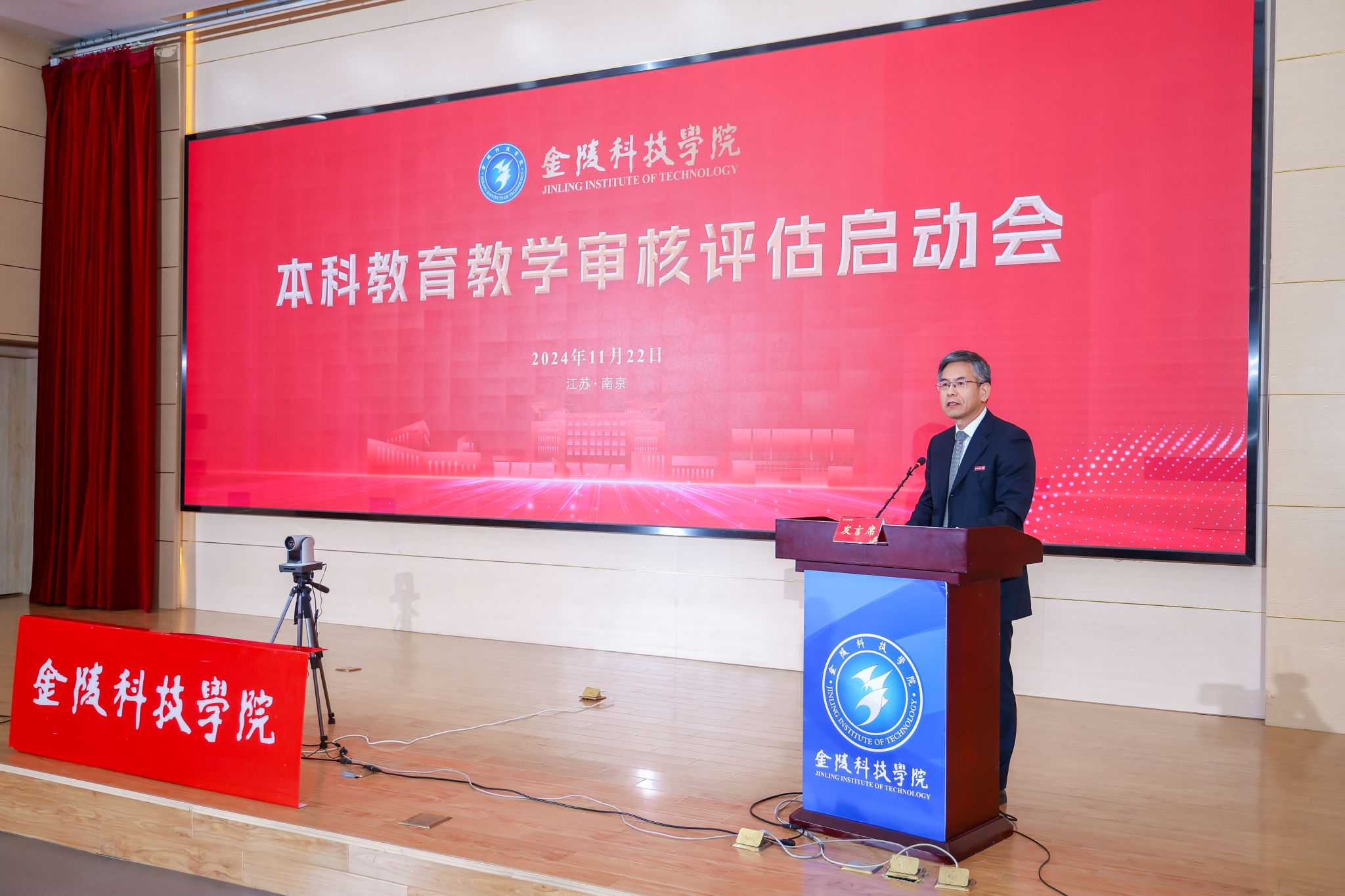 校党委书记刘志远在致辞中向出席启动会的各位专家表示欢迎,向省教育厅、省教育评估院长期以来对学校的关心和支持表示感谢。他指出,自上一轮审核评估以来,学校秉承“厚德兴业”校训,坚持“需求导向,能力为本,知行合一,重在创新”的人才培养理念,不断深化产教融合、校企合作,积极创新人才培养模式,切实培养适应地方经济社会发展需要的用得好、站得住、有作为、受欢迎的高素质应用型人才。学校自2022年9月启动迎评工作以来,按照教育部的部署和省教育厅的要求,将迎接和做好本科教育教学审核评估工作贯穿于办学治校和人才培养全过程,坚持“以评促建、以评促改、以评促管、以评促强”方针,围绕“一根本、两突出、三强化、五个度”目标,深化本科教育教学改革,强化内涵建设,推动学校人才培养质量持续提升。他表示,学校将真诚、全面地接受专家的指导,把专家们的意见建议作为进一步深化本科教育教学改革的动力和指南,坚决抓好反馈问题的整改落实,持续探索学校本科教育教学高质量发展的新路径,深化教育教学综合改革,不断提升人才培养质量。他强调,学校将以此次评估为契机,准确把握新时代党和国家事业发展对高等教育、对本科教育教学的新要求,进一步统一思想、凝聚共识、汇聚合力,强化“学生中心、产出导向、持续改进”的教育理念,推进本科教育教学质量保障体系建设,推动学校人才培养再上新台阶,为教育强国建设和中国式现代化南京新实践贡献金科力量。