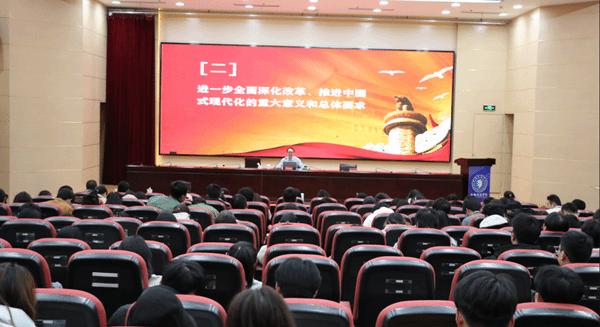 校党委副书记、党校校长单晓峰为学生党员作了题为《进一步全面深化改革,推进中国式现代化——学习党的二十届三中全会精神》的专题辅导报告。他从新时代进一步全面深化改革的重大成就、推进中国式现代化的重大政治意义和总体要求、全面深化改革的系统部署以及推进中国式现代化的领导水平等四个方面作了深刻阐述。他希望全体学员要认真学习贯彻党的二十届三中全会精神,深刻领会以中国式现代化全面推进中华民族伟大复兴的战略意义和实践意义,要深学深悟,学出情怀、学出担当、学出干劲,在为推进中国式现代化的金科篇章上作出表率。