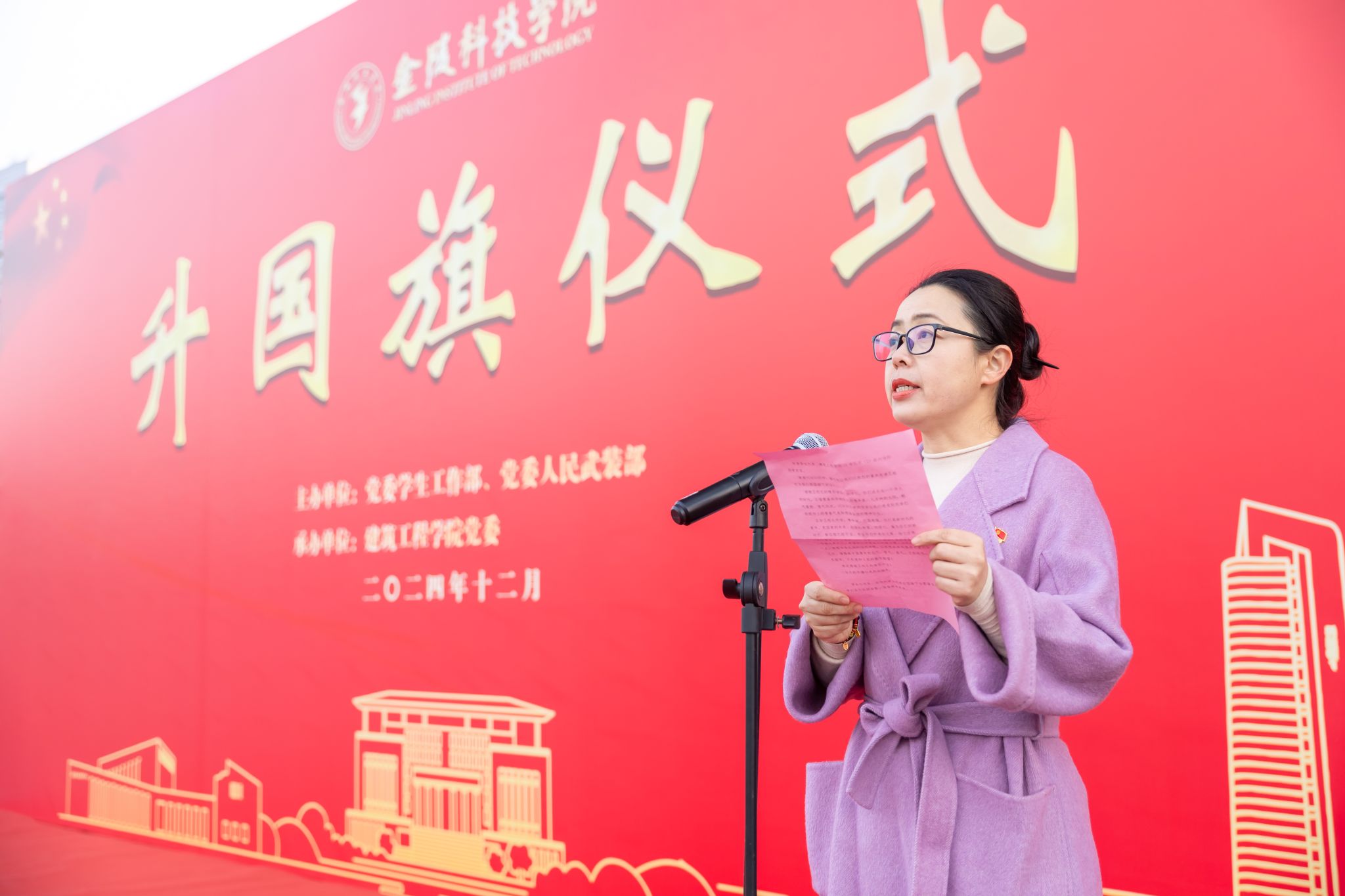 建筑工程学院学生代表刘诗阳以《以青春之名,传文化之魂》为题发言,她表示,要将爱国之情转化为实际行动,传承和弘扬中华优秀传统文化,以青春之名传承匠心之魂,用实际行动书写新时代的壮丽篇章,展现金科青年应有的担当。