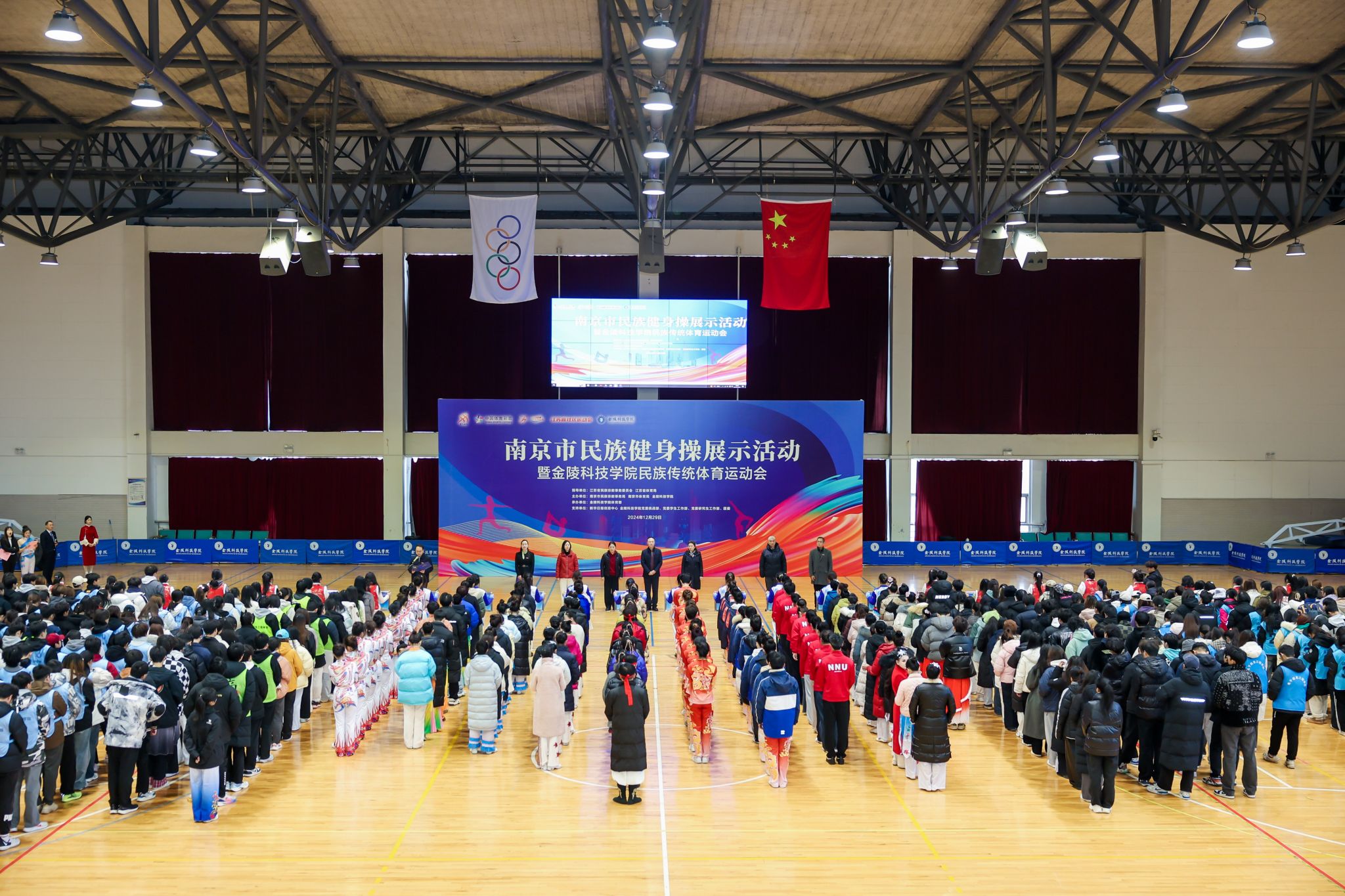 12月29日,由省民宗委、省体育局指导,市民宗局、市体育局和球王会体育官方网站共同主办、球王会体育部承办的2024年南京市民族健身操展示活动暨民族传统体育运动会在球王会体育馆成功举办。省民宗委民族一处副处长黎伟平,省体育局群体处副处长周玲美,市民宗局党组成员、副局长张颖华,南京市民宗局民族处处长张莺,市体育局群体处处长姚安,市民宗局民族处副处长郭震,南京理工大学教授、民族传统体育项目基地负责人朱继华,球王会党委副书记单晓峰、副校长顾晓燕及党委统战部、党委学生工作部、党委研究生工作部、团委等相关部门负责人出席本次活动。