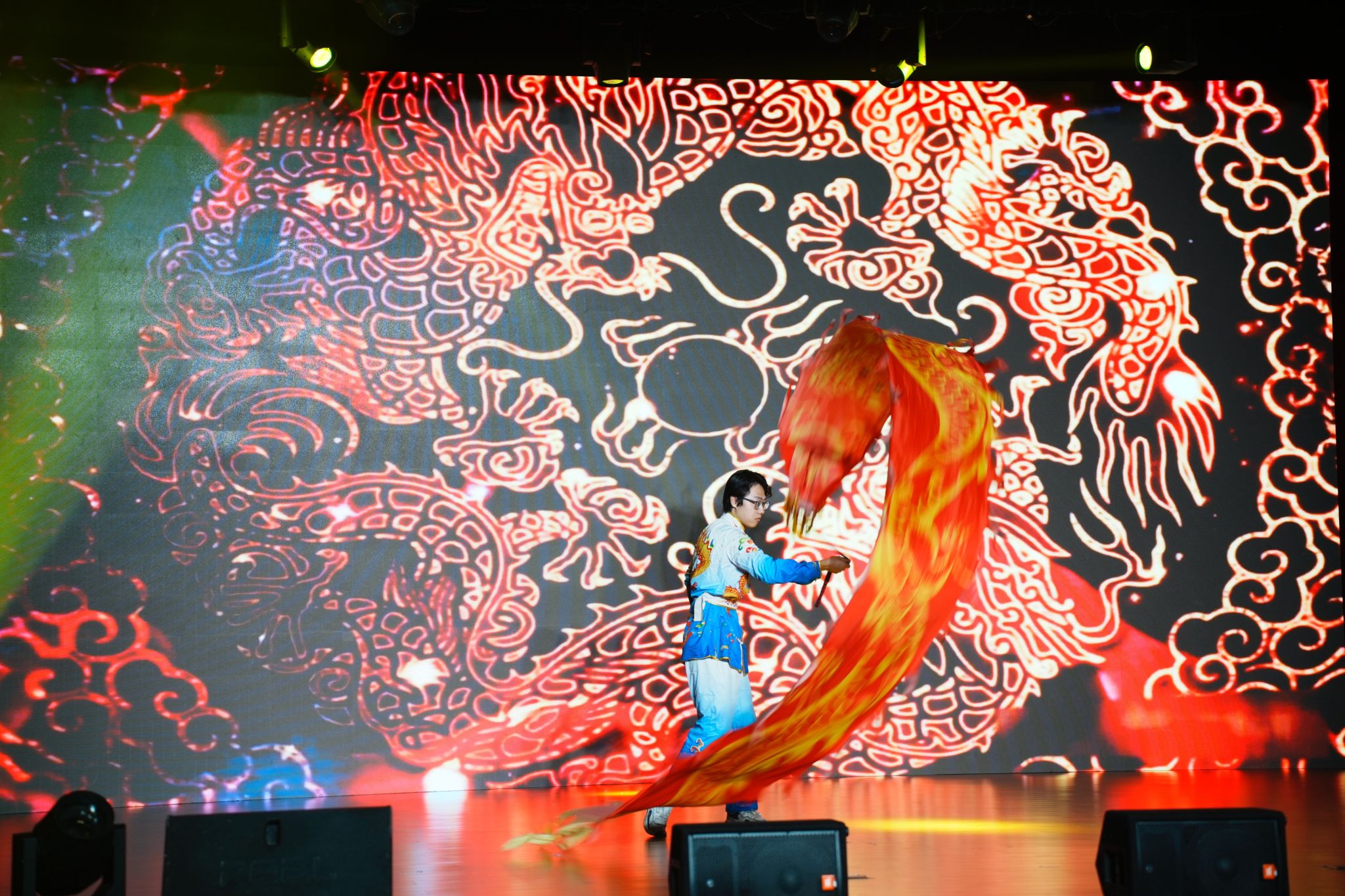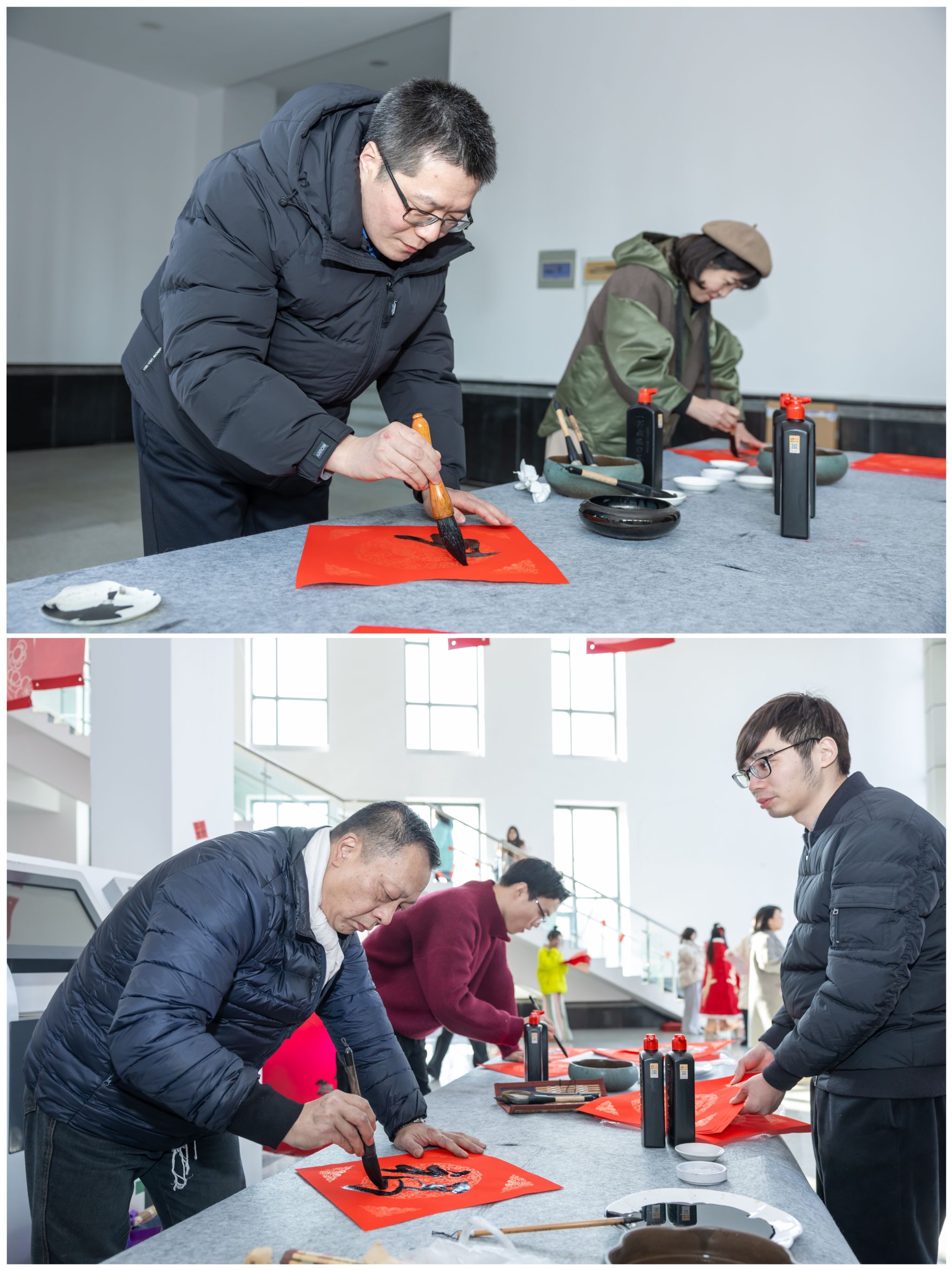 文艺汇演开始前,艺术学院四位书法功底深厚的师生现场挥毫泼墨,以行云流水般的笔势,书写饱含吉祥寓意的“福”字,一笔一画间尽显书法艺术的独特魅力。送“福”环节让观演师生感受到了浓浓的节日气氛,为整场文艺汇演增添了满满温情。