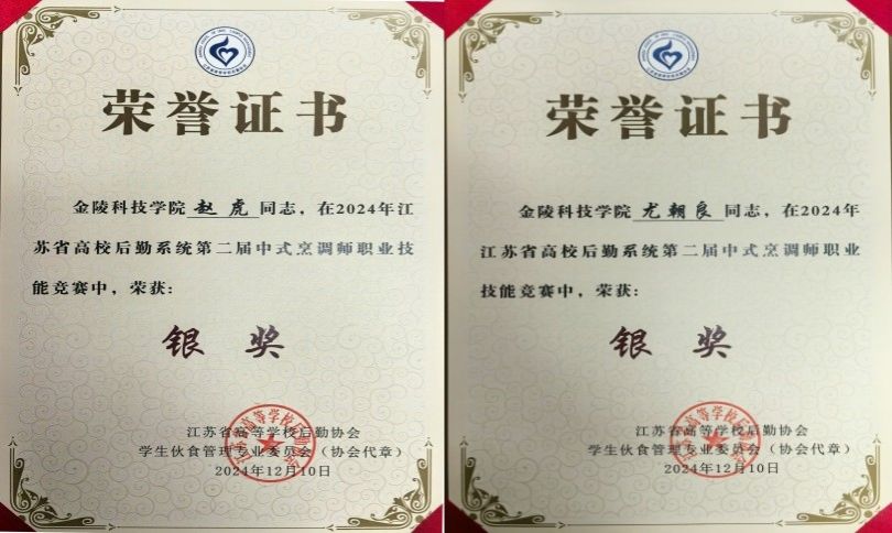 2024年12月24日,江苏省高校后勤系统第二届中式烹调师、中式面点师职业技能竞赛颁奖大会在扬州召开。此次大赛吸引了来自全省50所高校的177名选手参赛,球王会后勤实业总公司饮食服务中心员工赵虎、尤朝良2人荣获单项银奖,饮食服务中心被评为优秀服务窗口,学校荣获团体三等奖。