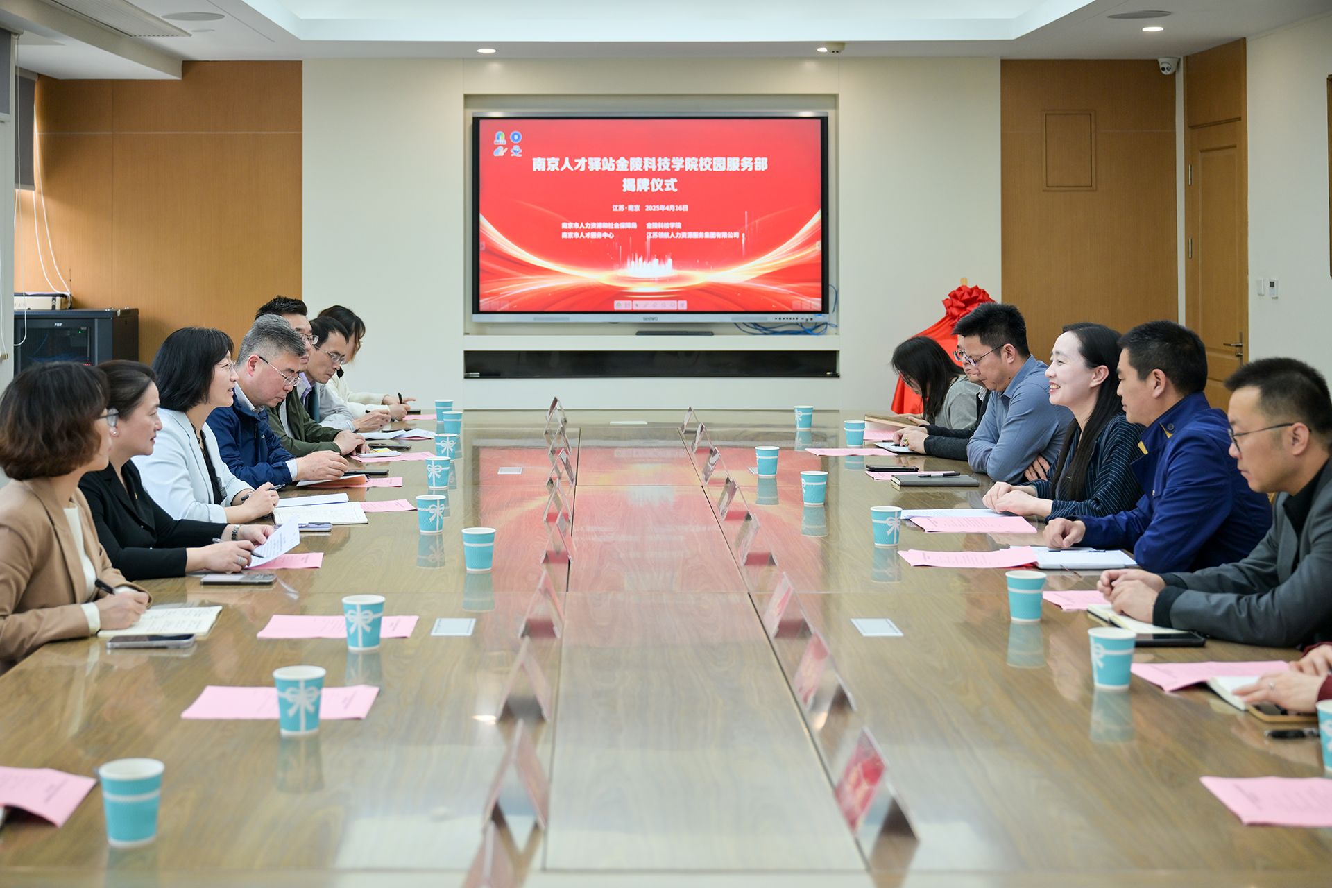 4月16日下午,2025年人才服务进高校暨“南京人才驿站—球王会体育官方网站校园服务部”揭牌仪式在行政楼240会议室举行。副校长顾晓燕,南京市人力资源和社会保障局党组成员、市人才服务中心主任卓小琳,江苏领航人力资源服务集团有限公司副总经理汤化冰参加揭牌仪式。