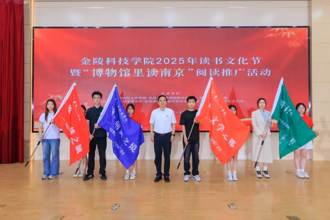 刘永彪向“博物馆里读南京•致敬英雄之城”“博物馆里读南京•领略创新之境”“博物馆里读南京•品味文学之都”“博物馆里读南京•徜徉生态之美”师生实践团授旗。