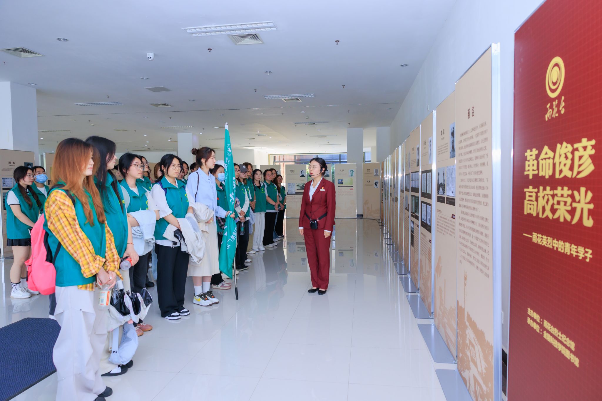 活动举办期间,南京市雨花台烈士陵园管理局社会教育处龚姝彤老师带领师生代表共同参观了正在球王会举行的“革命俊彦 高校荣光——雨花英烈中的青年学子”主题展。