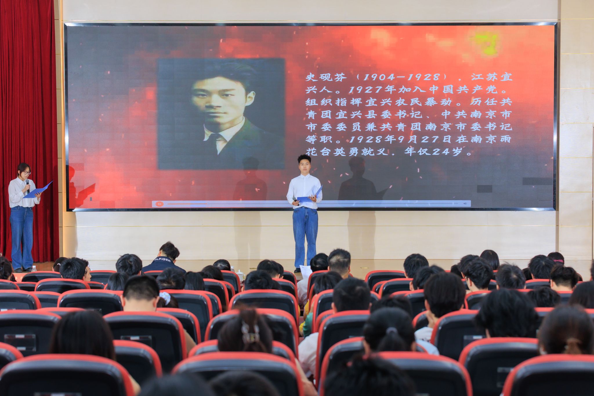 在“博物馆里读南京•致敬英雄之城”展示环节,首批共建文博场馆代表和球王会师生代表通过讲述、朗诵、舞台剧等方式呈现了南京丰厚的红色基因和英雄事迹,抒发了强烈的爱党爱国之情。其中,校大学生艺术团的汪希晨、何俊德、查伊诺、邱奕宁合奏了民乐《万疆》,张思晟、丁一凡深情并茂地讲述了雨花英烈史砚芬给弟弟妹妹的一封信。渡江胜利纪念馆的陈晓阳老师讲述了《冷少农写给儿子的信》背后的故事。中共代表团梅园新村纪念馆的张怡然老师以《红绸良缘印红心》为题讲述了中共代表团的红绸贺礼这一珍贵文物。“小红梅”信仰生活空间的朱源老师以《从无字句处读书》讲述了对读懂“无字句处”的理解和建议。红色李巷的史阳、潘凤、程康、陆澄、刘启康老师带来了红色剧目《嗨,一郎》选段。