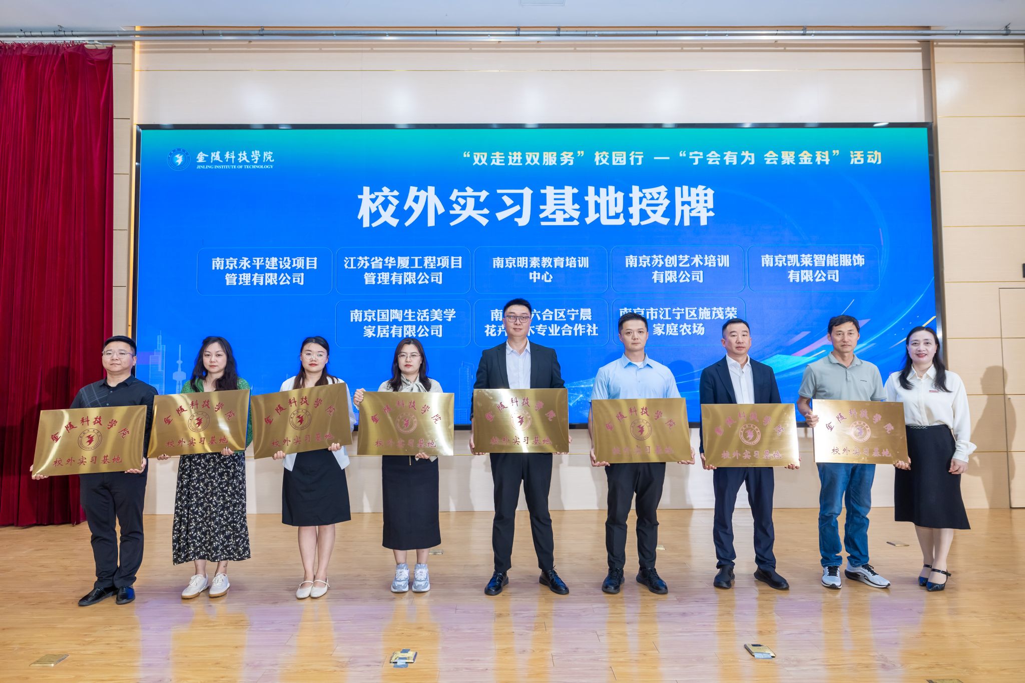 在赵小兵、丁雪、刘春明和季赛的见证下,高永祥代表学校与南京市人工智能行业协会、南京市互联网协会、南京区块链产业应用协会、南京市人力资源产业协会等12家行业协会商会代表签订了产学研合作协议。顾晓燕代表学校向南京工艺美术行业协会、南京交通工程有限公司、数贸云江苏科技有限公司、江苏智慧产教融合研究院、江苏欧帝电子科技有限公司、南京凯莱智能服饰有限公司等26家“球王会体育官方网站校外实习基地”授牌。