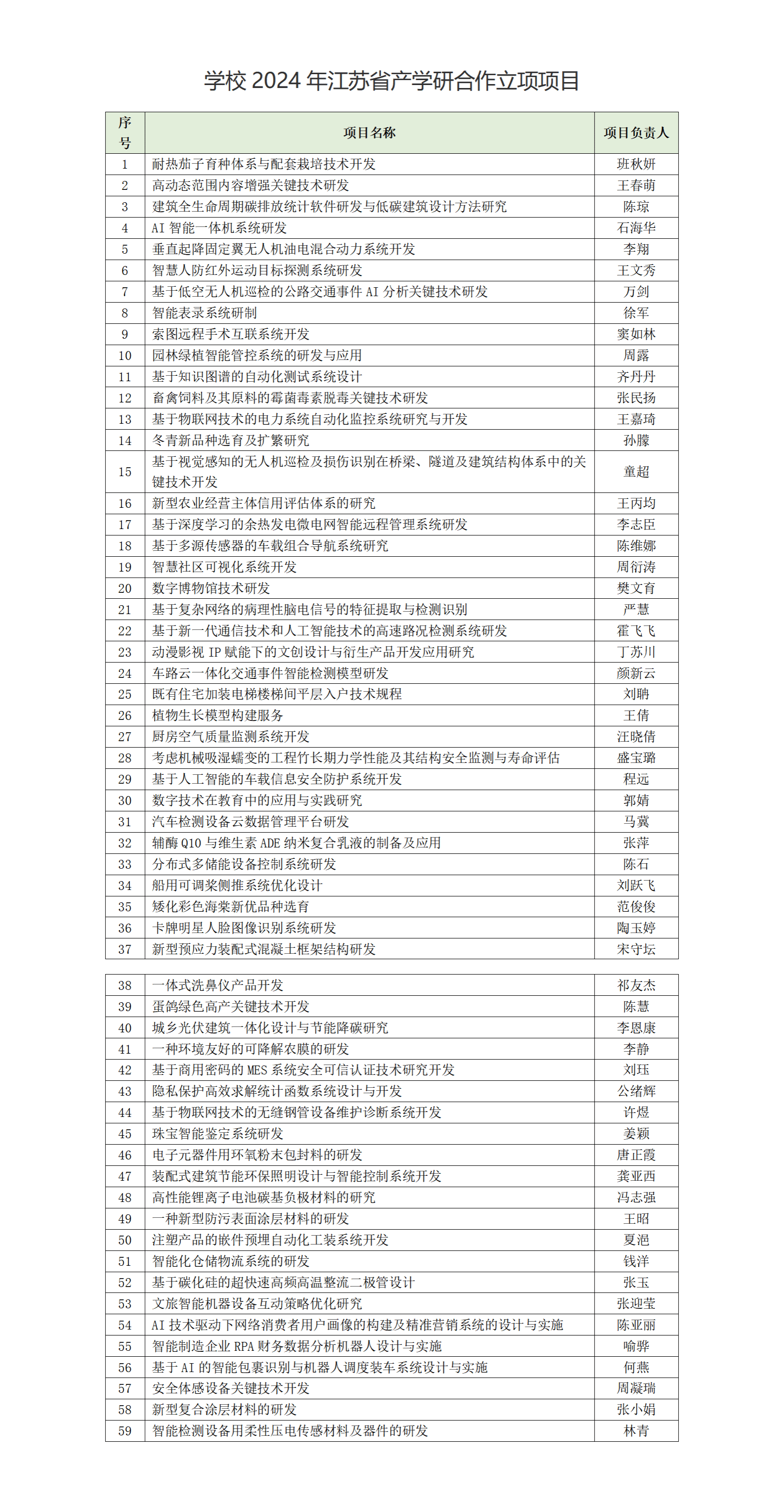 近年来,学校高度重视省产学研合作项目申报工作,积极组织教师参与申报,并多次在校内开展政策宣讲与申报专项辅导,有效提升了项目申报质量。学校将以此次获批为契机,持续深化科技创新与行业、区域的融合发展,为服务地方经济高质量发展提供更加有力的科技与人才支撑。
