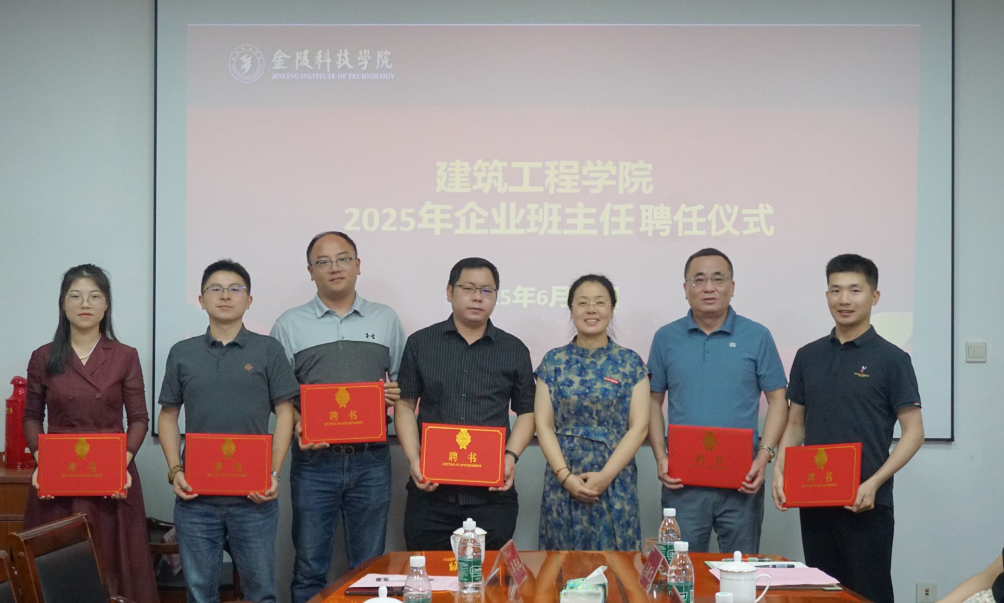 为深化校企协同育人机制,共绘应用型人才培养新图景,6月21日校园开放日期间,建筑工程学院举行企业班主任座谈会暨聘任仪式,副校长王延光及建筑工程学院相关负责人参加。会议邀请了1987届道路桥梁专业校友、现任南京公路协会常务副会长、南京交通工程有限公司执行董事徐军,2002届工程项目管理与工程监理专业校友、现任六度设计院南京分公司总经理杨功庆,2010届建筑学专业校友、现任江苏苏地行土地房产评估/南京众诚规划设计咨询有限公司副总规划师兼三所所长孙文军,2017届建筑学专业校友、现任南京亿丰建设有限公司总经理臧蒋涛,2017届工程管理专业校友、现任南京安智建设工程有限公司商务经理韩爽,2020届建筑学专业校友、现任南京昱升电子商务有限公司总经理李河池。