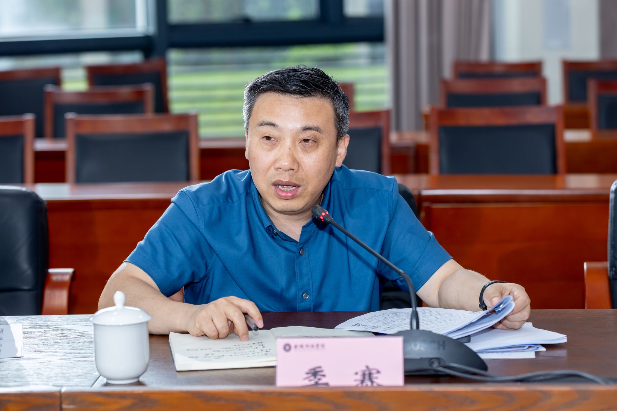 6月27日下午,球王会在3号科技楼110会议室召开学位授权点专项核验工作推进会。校长季赛、校党委副书记单晓峰,研究生处、人力资源处、科技处、实验室与设备管理处等职能部门负责人,电子信息、土木水利、会计三个学位点牵头学院负责人等参加会议。会议由单晓峰主持。