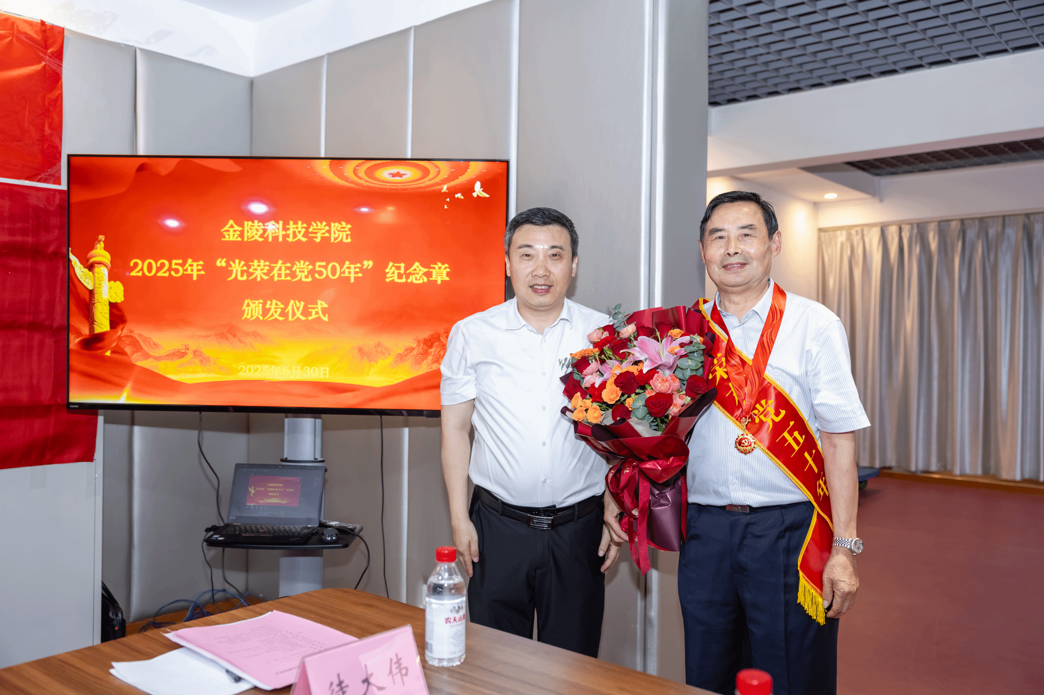 获颁纪念章老党员代表杨志伟、伍清林深情回顾了入党心路历程和个人成长经历。他们表示,获颁“光荣在党50年”纪念章,深切感受到党组织的关怀和肯定,纪念章不仅是荣誉也是激励,今后将继续严格要求自己,永远听党话、感党恩、跟党走,始终以一颗热忱之心,为党的教育事业和学校高质量发展贡献自己的力量。