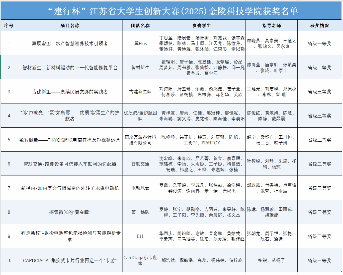 获奖项目名单