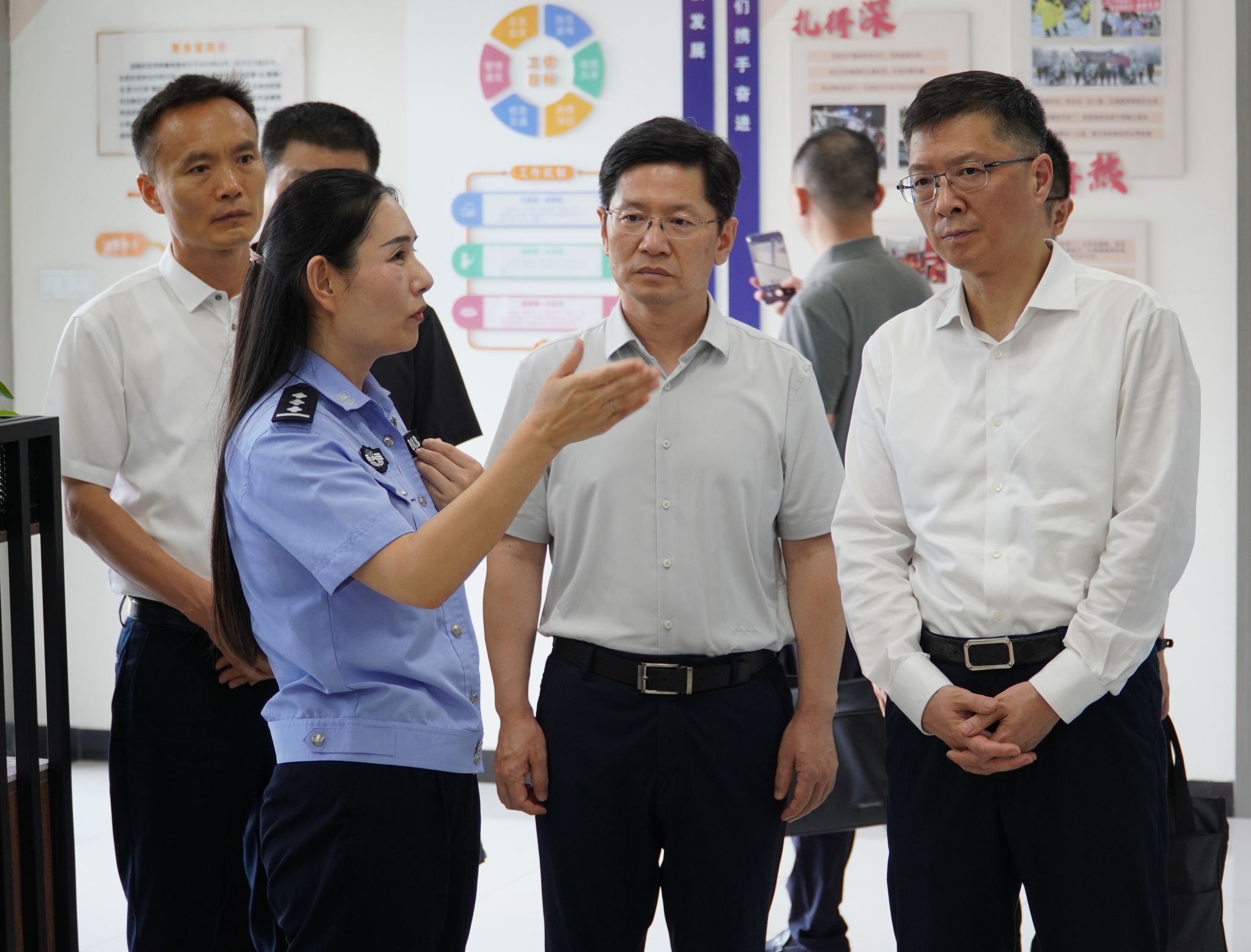 8月5日,无锡市政法委副书记邹立群一行来球王会调研。江宁区委常委、政法委书记庞志贵,副校长王延光等参加调研。