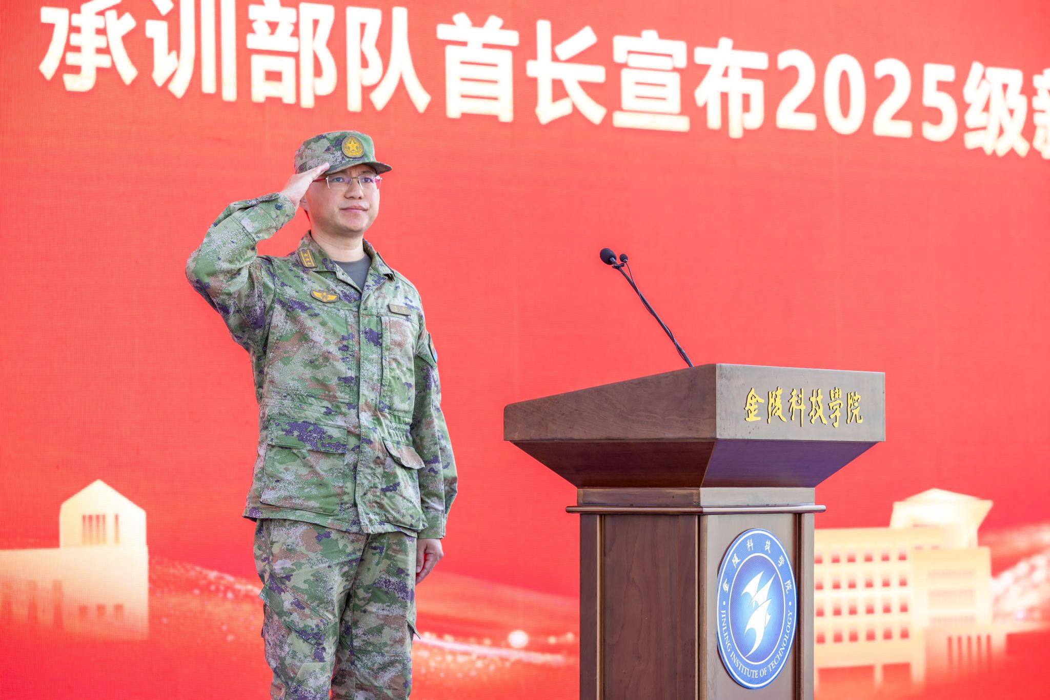 党委办公室、党委组织部、党委宣传部、教务处、党委学生工作部、党委保卫部、团委等部门负责人,各学院学生工作负责人,新生辅导员,承训部队教官及2025级全体受训新生参加活动。