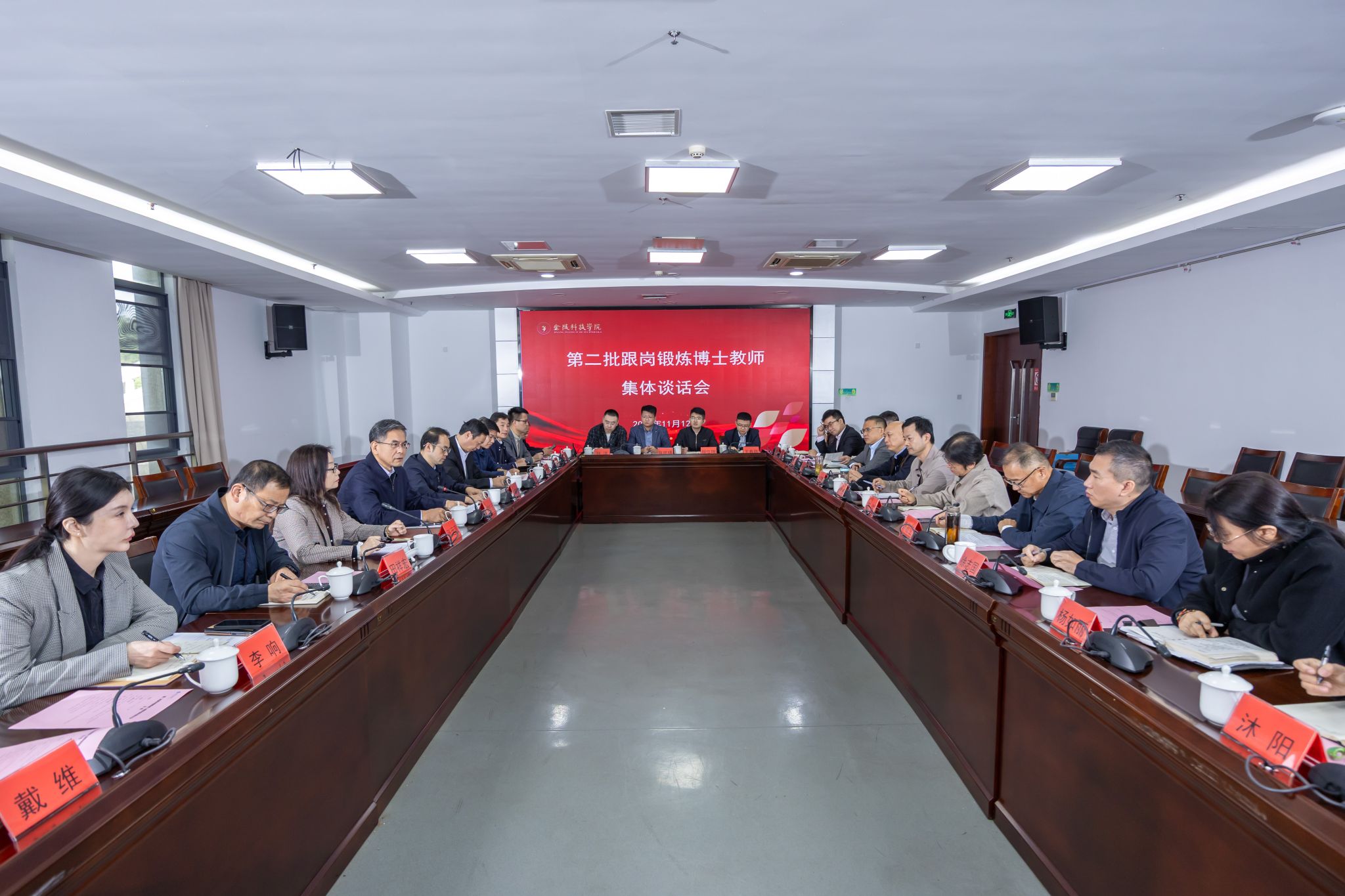 各派出二级学院党组织书记、接收单位主要负责人及第二批跟岗锻炼博士教师参加会议。
