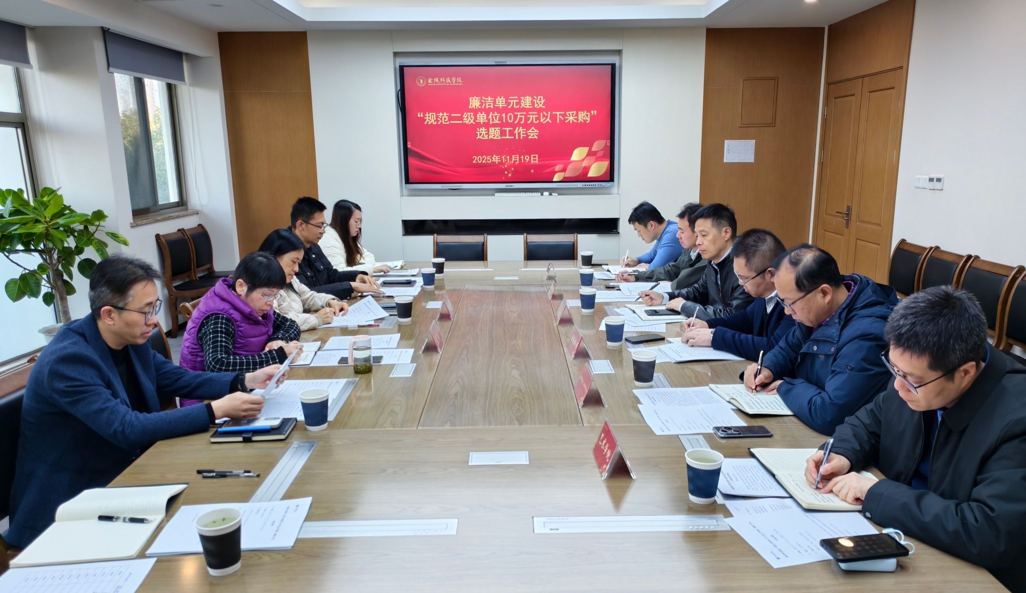 各廉洁单元建设选题单位负责人汇报了本单位分散采购自查结果,聚焦“内控薄弱点、制度空白点、岗位风险点”提出整改举措,并就二级学院和部门如何强化采购内控建设、提升管理能力等核心问题建言献策。各选题单位均表示同意本次学校招投标采购相关制度的修订。