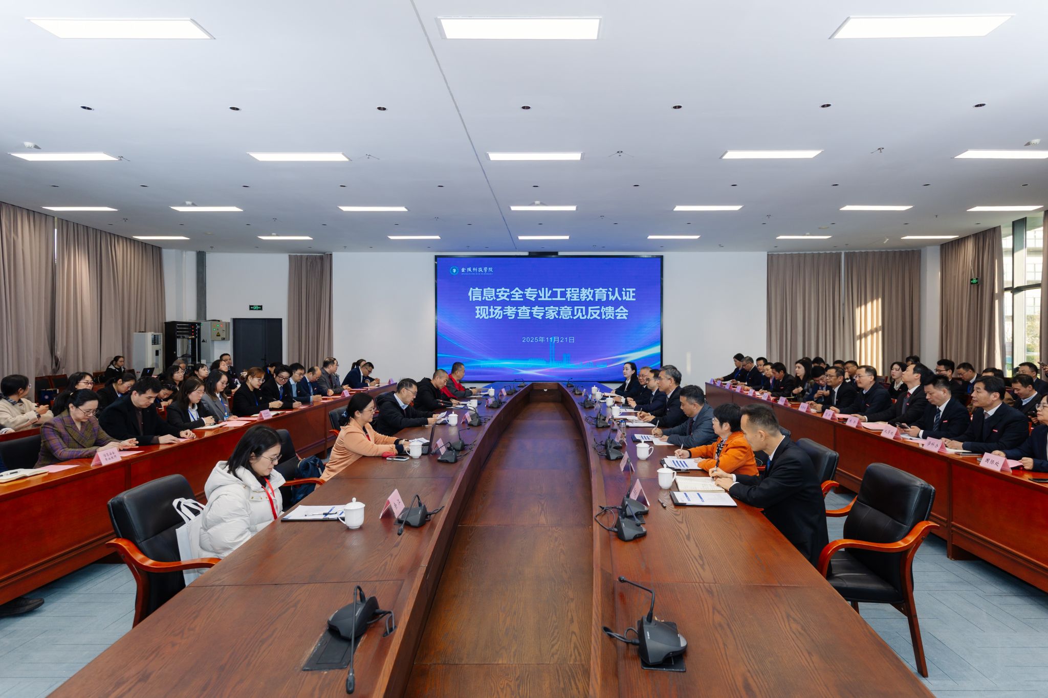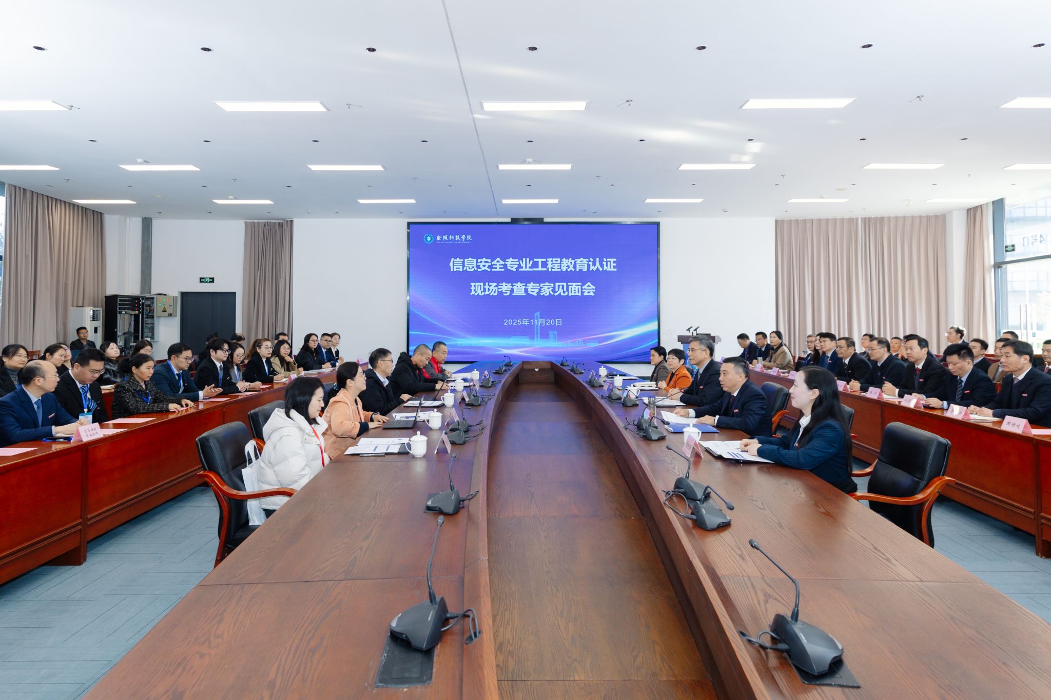 11月20日上午,学校召开现场考查专家见面会。校党委书记刘志远、校长季赛、副校长张燕、副校长顾晓燕、纪委书记王靖华,相关职能部门和学院负责人,网络安全学院教师参加。季赛代表学校热烈欢迎专家组来校考查指导,并介绍了学校的情况及信息安全专业开展工程教育认证的有关工作。王宽全代表专家组介绍了此次现场考查的目的和要求,专家组听取了信息安全专业负责人所作专业自评自建补充情况汇报,并对相关职能部门负责人和专业负责人进行了现场提问。