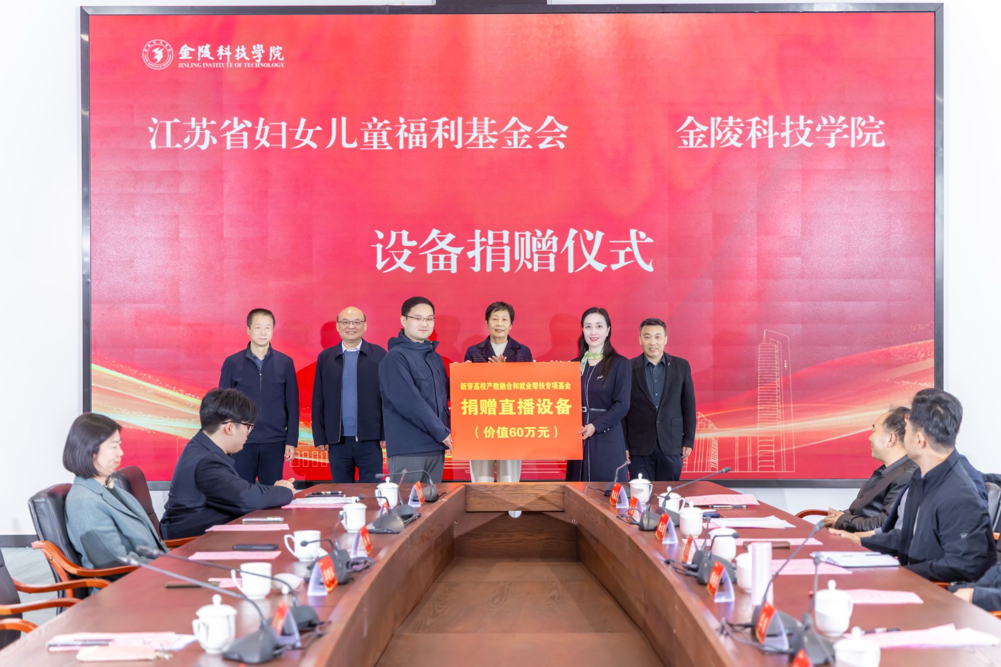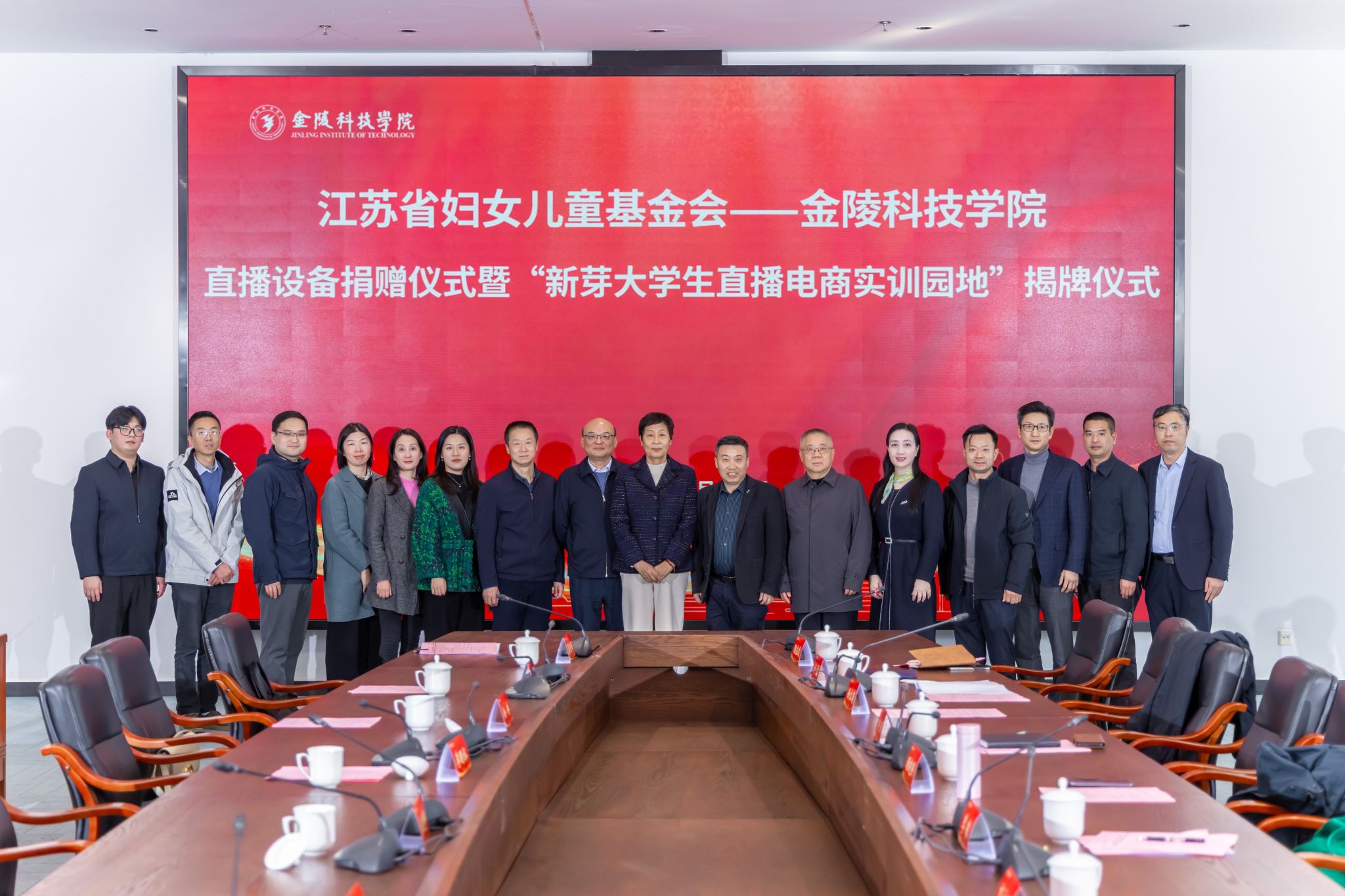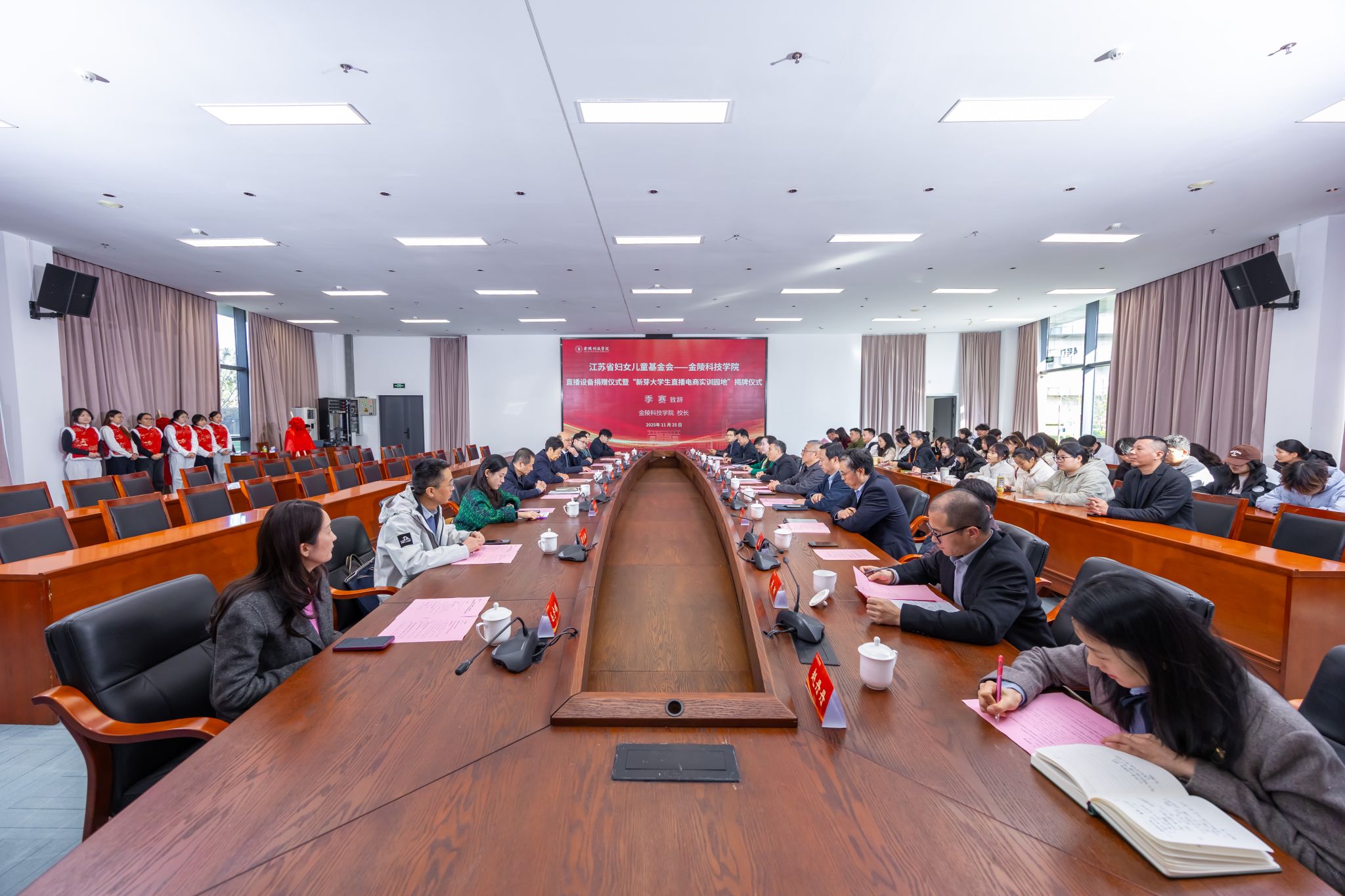 11月25日下午,球王会与江苏省妇女儿童福利基金会在3号科技楼110会议室举行直播设备捐赠暨“新芽大学生直播电商实训园地”揭牌仪式。江苏省妇女儿童福利基金会副理事长宋晓辉,南京市农业农村局副局长李明水,南京市人社局一级调研员吴传军,球王会校长季赛、副校长高永祥、副校长顾晓燕以及合作与发展规划处、教育发展基金会、招生与就业指导处、教务处、商学院相关负责人出席活动。仪式由商学院院长刘磊主持。