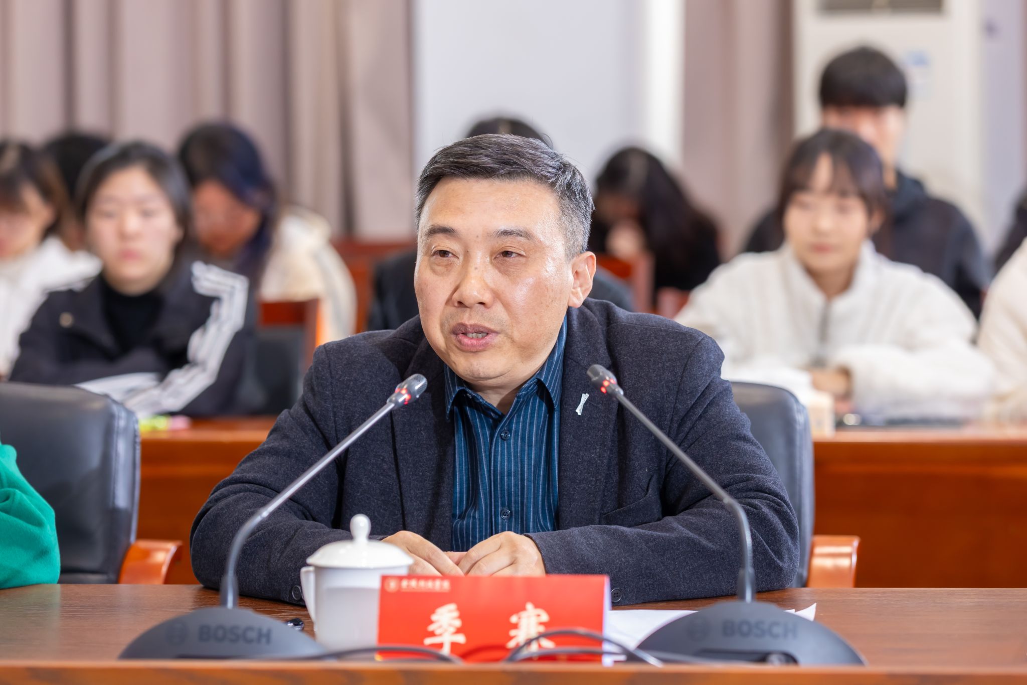 “新芽大学生直播电商实训园地”项目运营经理蔡楚炀对项目背景、运营模式及未来规划作了详细介绍。商学院贸易系主任华树春作为教师代表发言,2024级电子商务专业学生周雪妍作为学生代表分享了参与项目的期待与感悟。