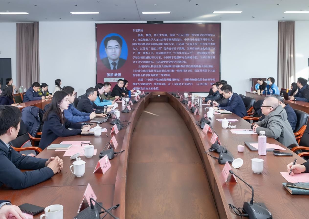 会议第二阶段,特别邀请国家重大人才计划领军人才、南京师范大学人文社会科学研究院院长张振教授以《国社科申报新变化及应对策略》为题作专题报告。张振结合2025年国家社科基金申报政策调整情况,从“新变化解读”“成功立项三要素”两大维度展开系统讲解。他详细阐释了好选题的核心标志与来源渠道,深入剖析了研究视角创新、核心概念界定等关键问题,并针对申报书撰写中的论证难点,从学术史梳理、重点难点提炼、框架详略把控、个人研究基础呈现等方面提供了实用技巧。他指出,国社科申报既要筑牢前期成果根基,更要培养敏锐的学术洞察力,紧扣社会热点与民生关切提炼研究方向,并分享了多年积累的申报经验和常见误区规避方法,为参会教师提供了全方位指导。