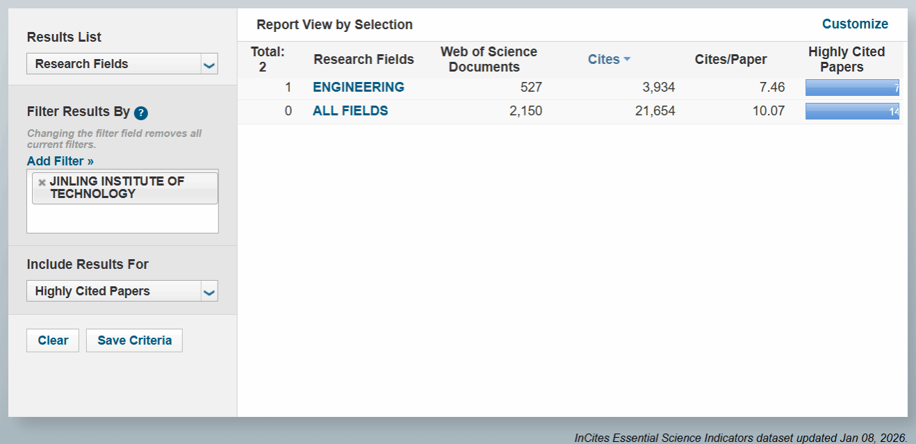 ESI是基于Web of Science核心合集数据库所收录的全球12000多种学术期刊的1000多万条文献记录而建立的计量分析数据库,涵盖22个学科领域,通过论文总被引频次等指标对全球机构进行排名,已成为全世界普遍用以评价高校和科研机构国际学术水平及影响力的重要评价指标工具。