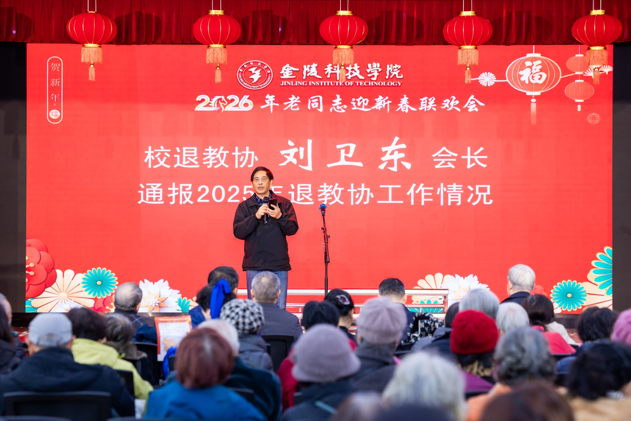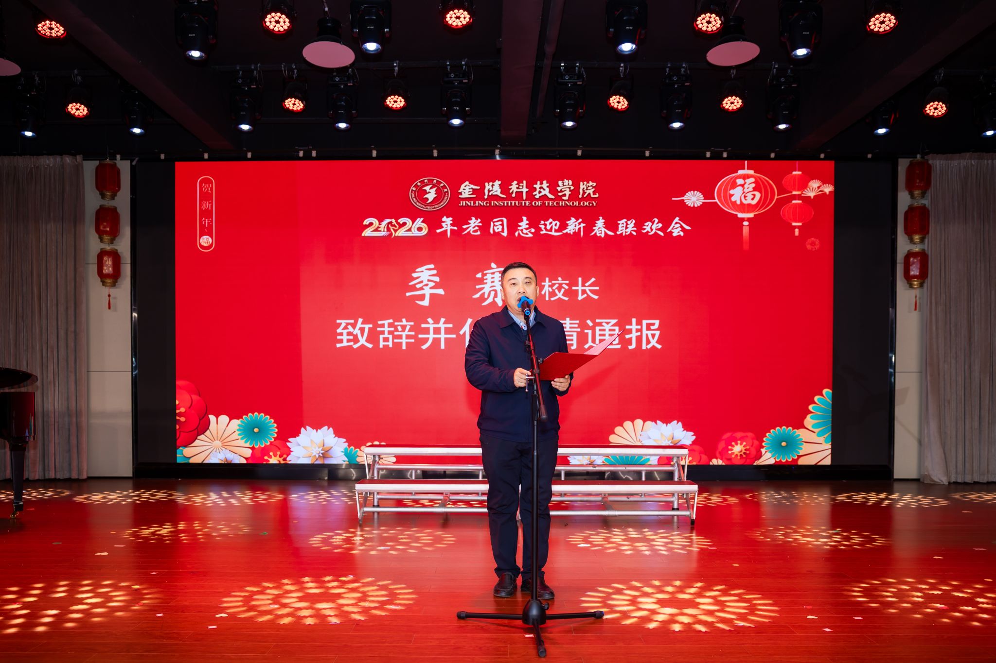 联欢会上,季赛致辞并作校情通报。他代表学校党政和全体师生员工向离退休老领导、老同志致以最诚挚的问候和新春祝福。他回顾了学校一年来在党建引领和作风建设、战略谋划和办学层次提升、校地协同和校校协作、科研教学和品牌影响等各项事业中取得的丰硕成果。他指出,学校高质量发展离不开各位老领导、老同志在岗时的奉献耕耘和退休后的关心支持,衷心感谢老领导、老同志长期以来为学校发展倾注的智慧与心血。他表示,2026年,学校将紧扣省一流应用型本科高校建设、博士学位授予单位建设、大学建设等战略目标,持续深化教育、科技、人才一体改革,在高质量发展道路上勇毅前行,为中国式现代化南京新实践作出更大贡献。他希望各位老领导、老同志继续关注学校发展,积极建言献策,为学校高质量发展贡献力量。