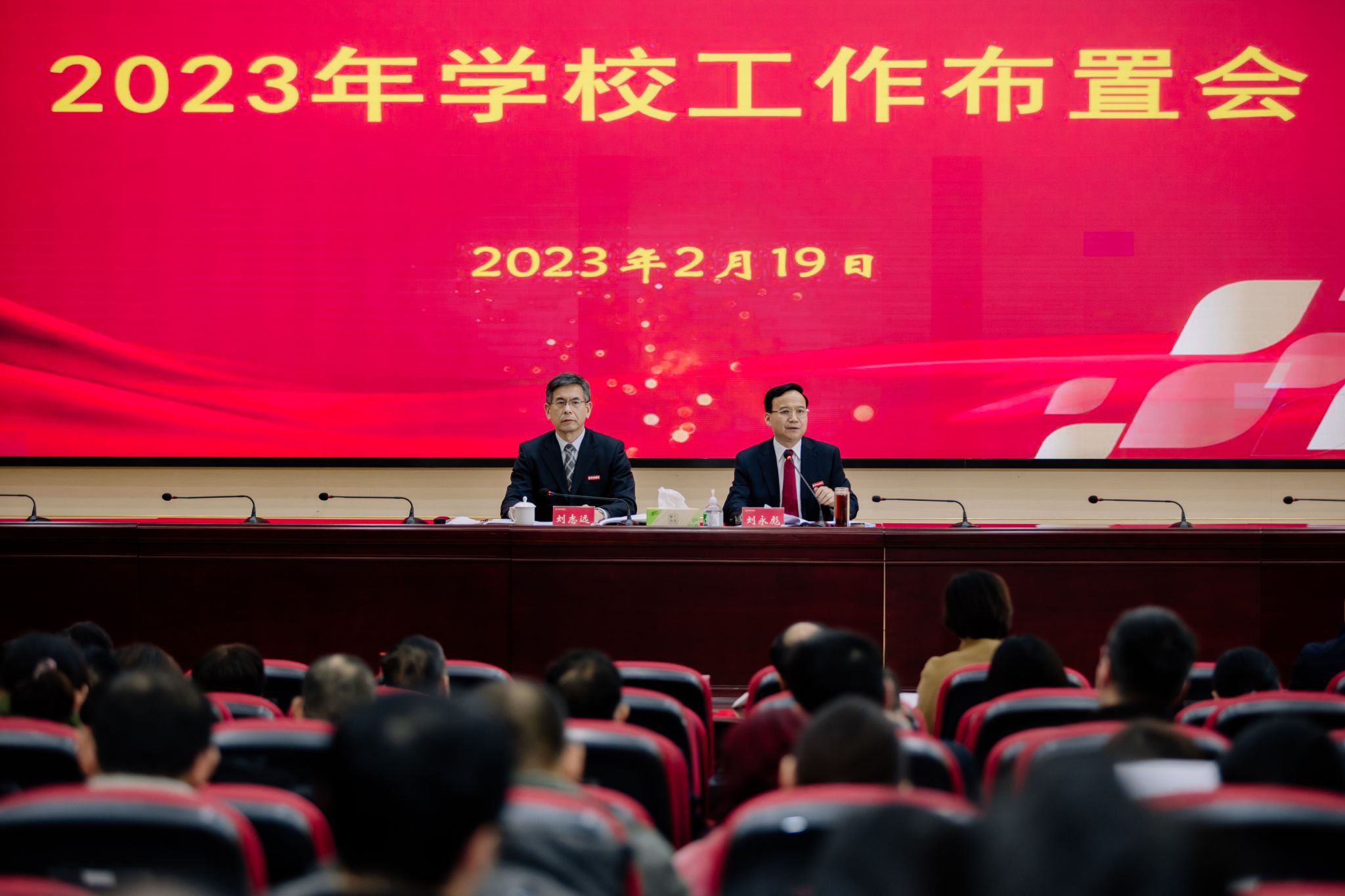 2月19日,球王会在科技楼报告厅召开2023年工作布置会。全体校领导,校督察专员、中层干部,正高职称教师,部分民主党派基层组织主要负责人、校知联会主要负责人、各级人大代表和政协委员代表,部分教代会、工会、妇代会代表参加会议。校长刘永彪代表学校部署2023年工作。校党委书记刘志远主持会议并讲话。