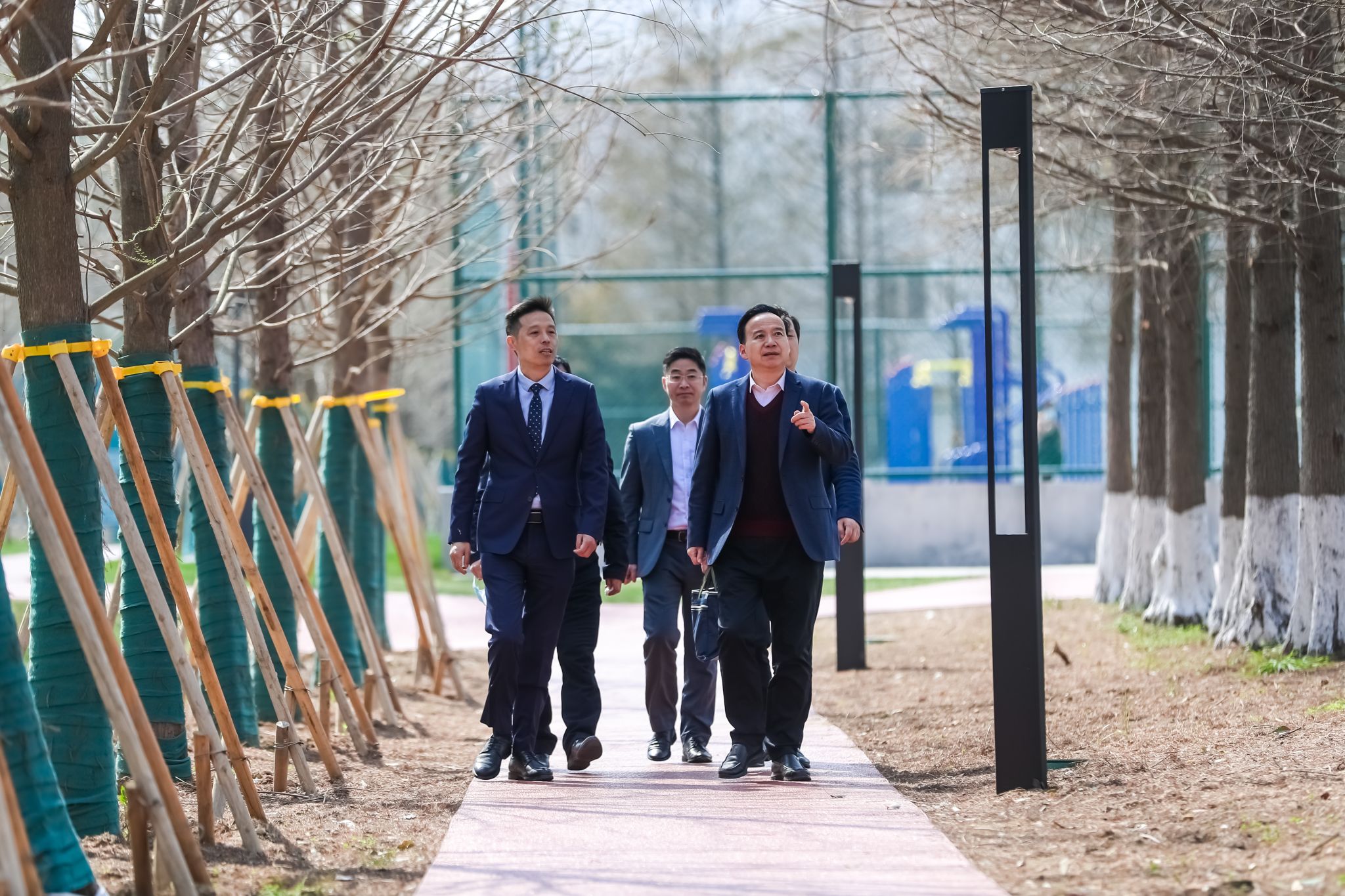 刘永彪一行实地考察了江宁校区南区运动场周边及南区食堂后场,听取了相关部门负责人的工作汇报,召开了座谈交流会。