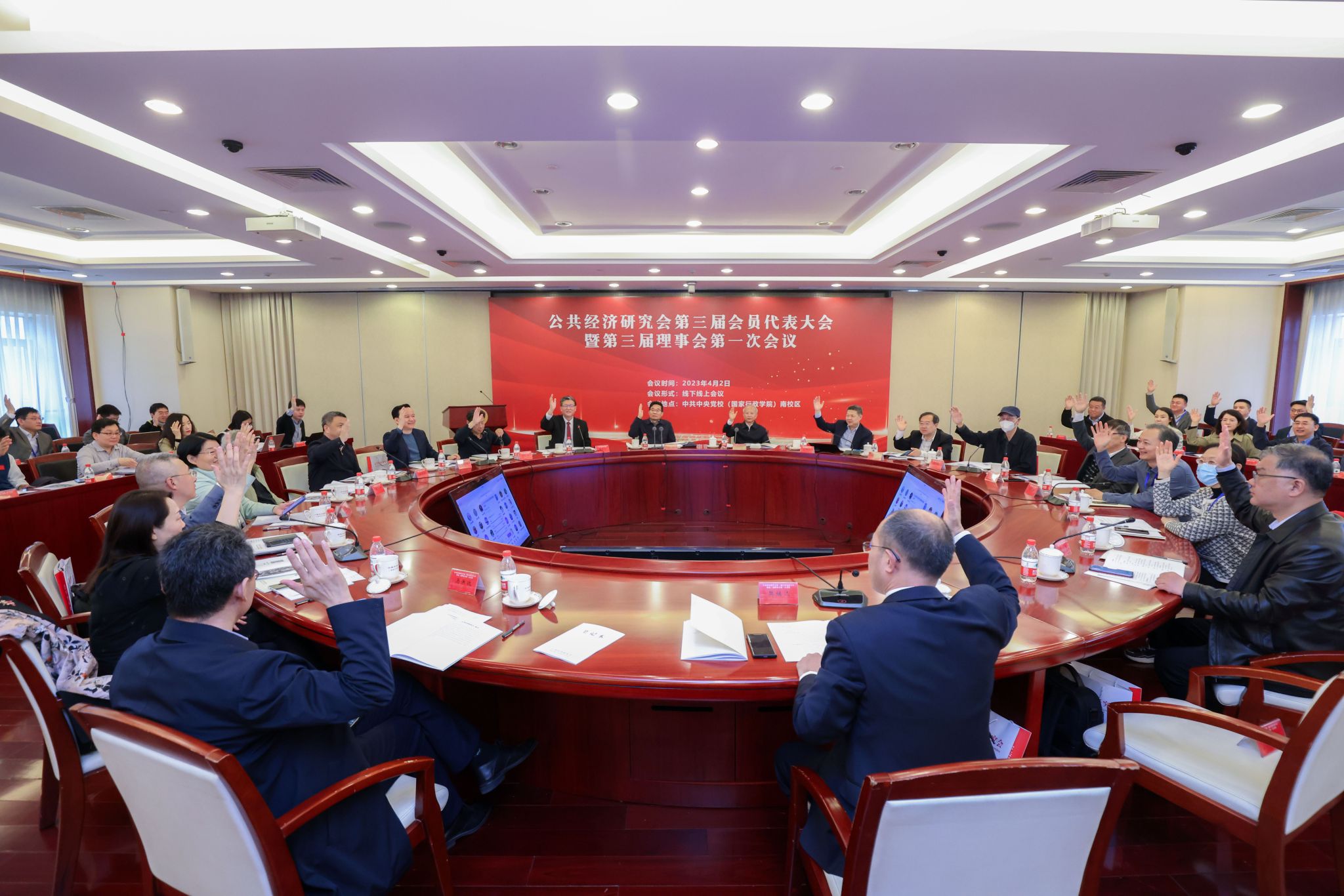会上,公共经济研究会进行了新一届理事会换届工作,原中共中央党校副校长赵长茂教授当选会长。球王会校长刘永彪教授,中国社会科学院经济研究所所长黄群慧研究员,中国人民大学经济学院党委书记、院长刘守英教授,中共中央党校(国家行政学院)报刊社社长许宝健研究员,中共中央党校(国家行政学院)经济学教研部副主任王小广教授,中共中央党校(国家行政学院)社会和生态文明教研部副主任赖德胜教授,中共中央党校(国家行政学院)科研部一级巡视员万代玺当选副会长。中共中央党校(国家行政学院)公共管理教研部公共经济教研室主任樊继达教授当选秘书长。