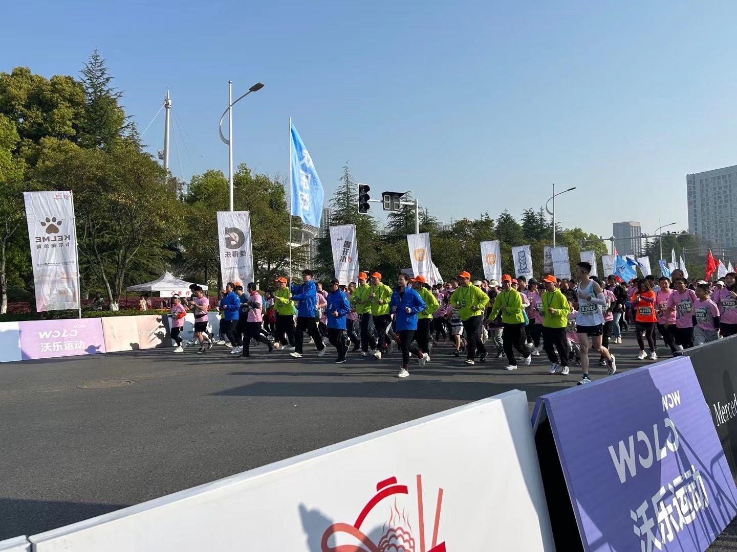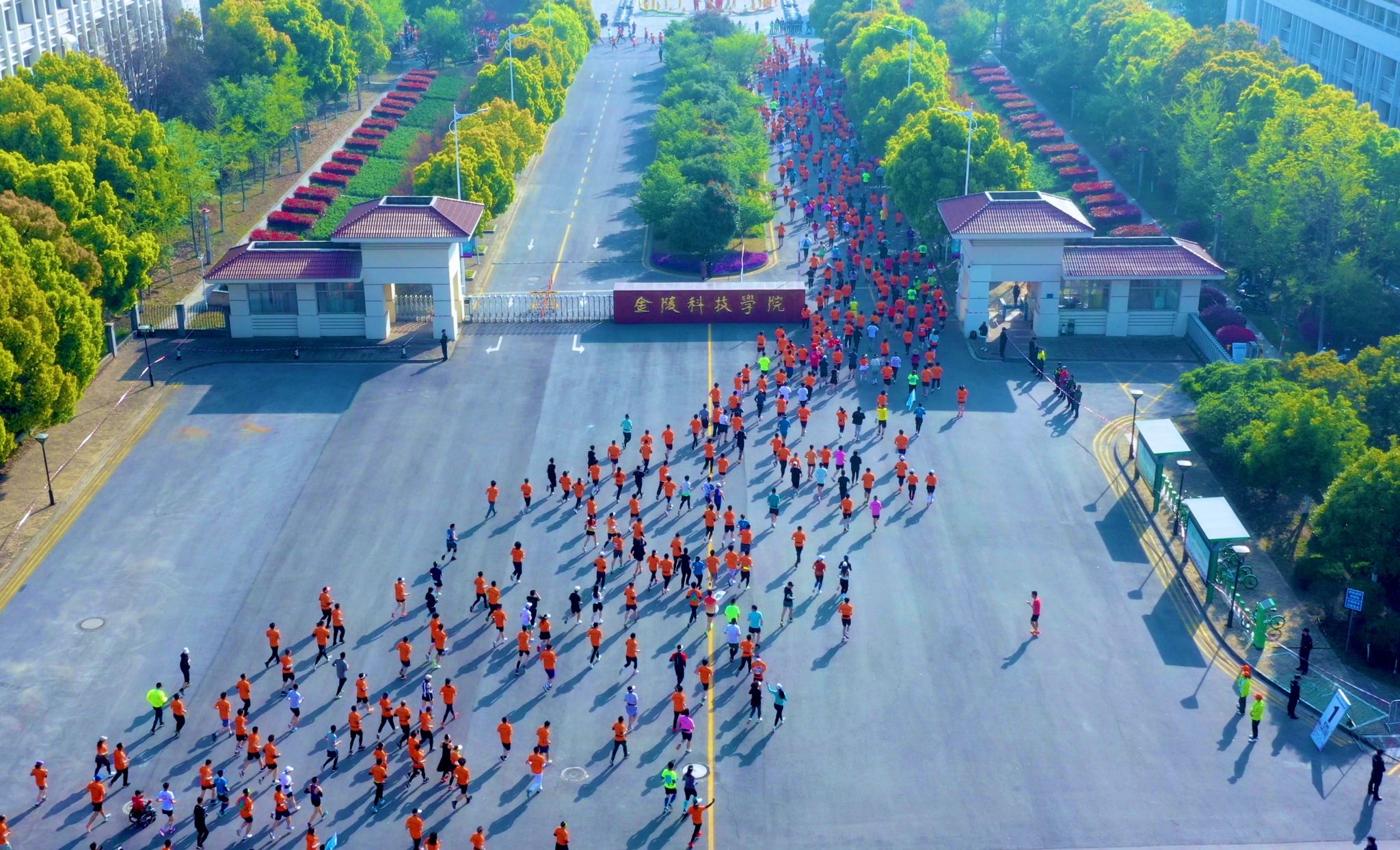 马拉松参赛队伍穿越球王会校园,感受金科热情
