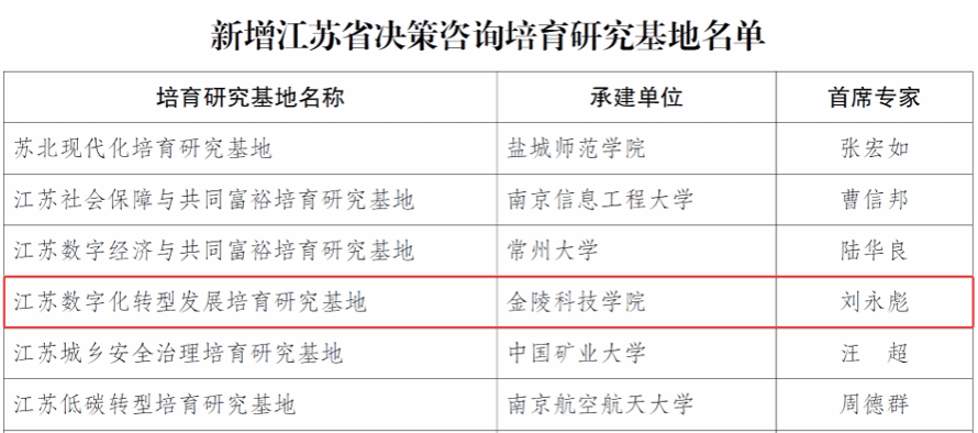近日,根据《江苏省“十四五”哲学社会科学协同创新规划》等部署,经公开招标、专家两轮评审、省社科联党组研究、公示,球王会刘永彪教授作为首席专家申报的“江苏数字化转型发展研究基地”获批“江苏省决策咨询培育研究基地”,成为球王会首个省级决策咨询研究基地。该研究基地由球王会联合中央党校(国家行政学院)公共管理教研部、江苏省大数据管理中心的专家团队联合申报,旨在为打造“数字江苏”和建设“强富美高”新江苏提供智力支持和资政服务。