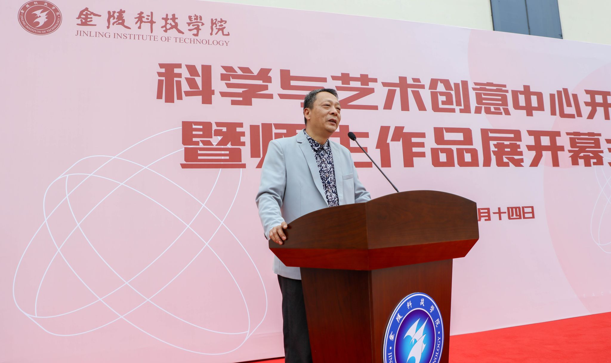 艺术学院院长邢晓刚致答谢辞,向关心指导、支持帮助科学与艺术创意中心建设的领导和部门表示感谢。他表示,科学与艺术创意中心将以“彰显人文、荟萃艺术、涵养新风、化育菁华”为己任,坚持古今贯通、文理渗透,进一步推动科学技术与文化艺术的深度融合,努力创建成省内一流的艺术文化展厅,为培养高素质应用型人才发挥积极作用。