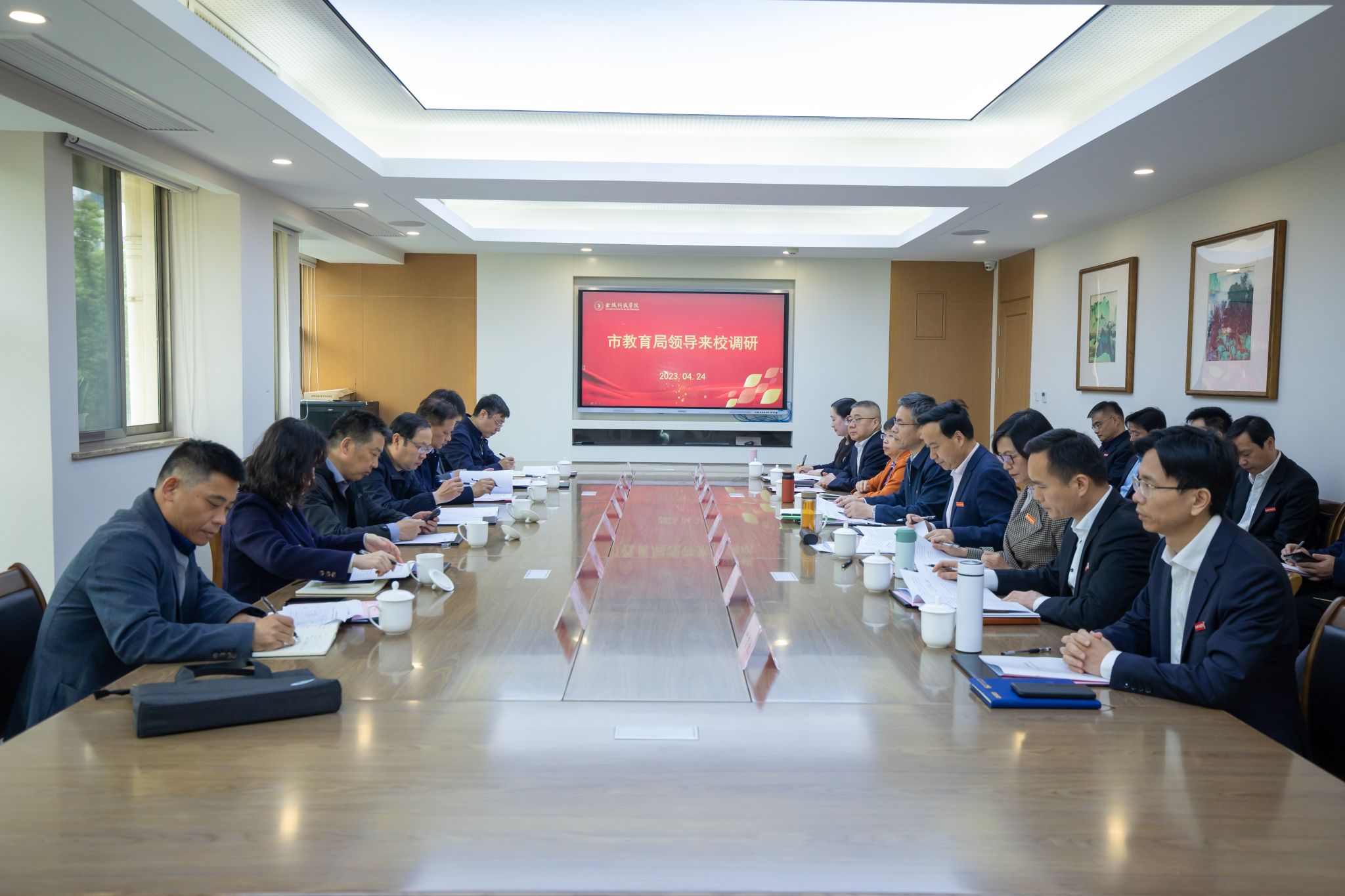 为深入开展学习贯彻习近平新时代中国特色社会主义思想主题教育,将调查研究走深走实,4月24日,南京市教育局局长、市委教育工委书记吴秀亮,副局长潘东标、副局长周鹏,以及办公室、高等教育与师资培训处、财务处、学校建设管理处负责人来球王会调研市属高校建设发展工作。校党委书记刘志远、校长刘永彪率领在校全体校领导参加调研活动。