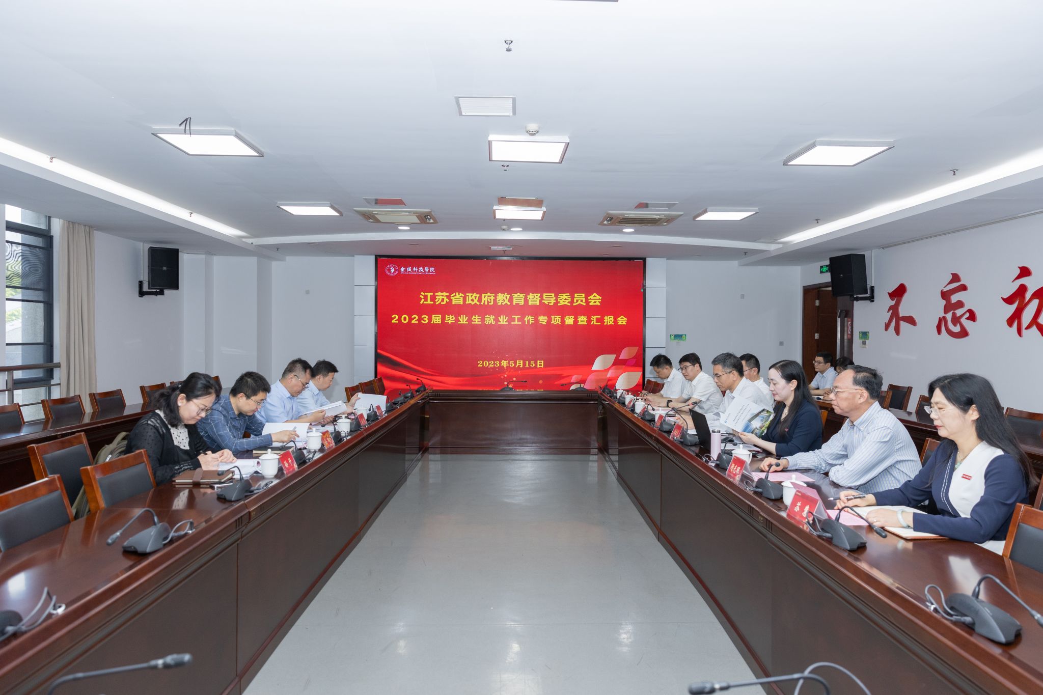 近日,江苏省政府教育督导委员会就业工作专项督导组来球王会实地督查2023届毕业生就业工作。督导组成员有国家督学、省教育厅原一级巡视员林伟担任组长,南京工业大学学生工作处副处长齐鹏、盐城工业职业技术学院学工处处长孙干、江苏省高校招生就业指导服务中心代理服务部笪银锋,督导组在校进行为期半天的督查工作。校党委书记刘志远、副校长顾晓燕及党委办公室,教务处,党委学生工作部、招生与就业指导处等部门负责人参加了汇报会和督查结果反馈会。