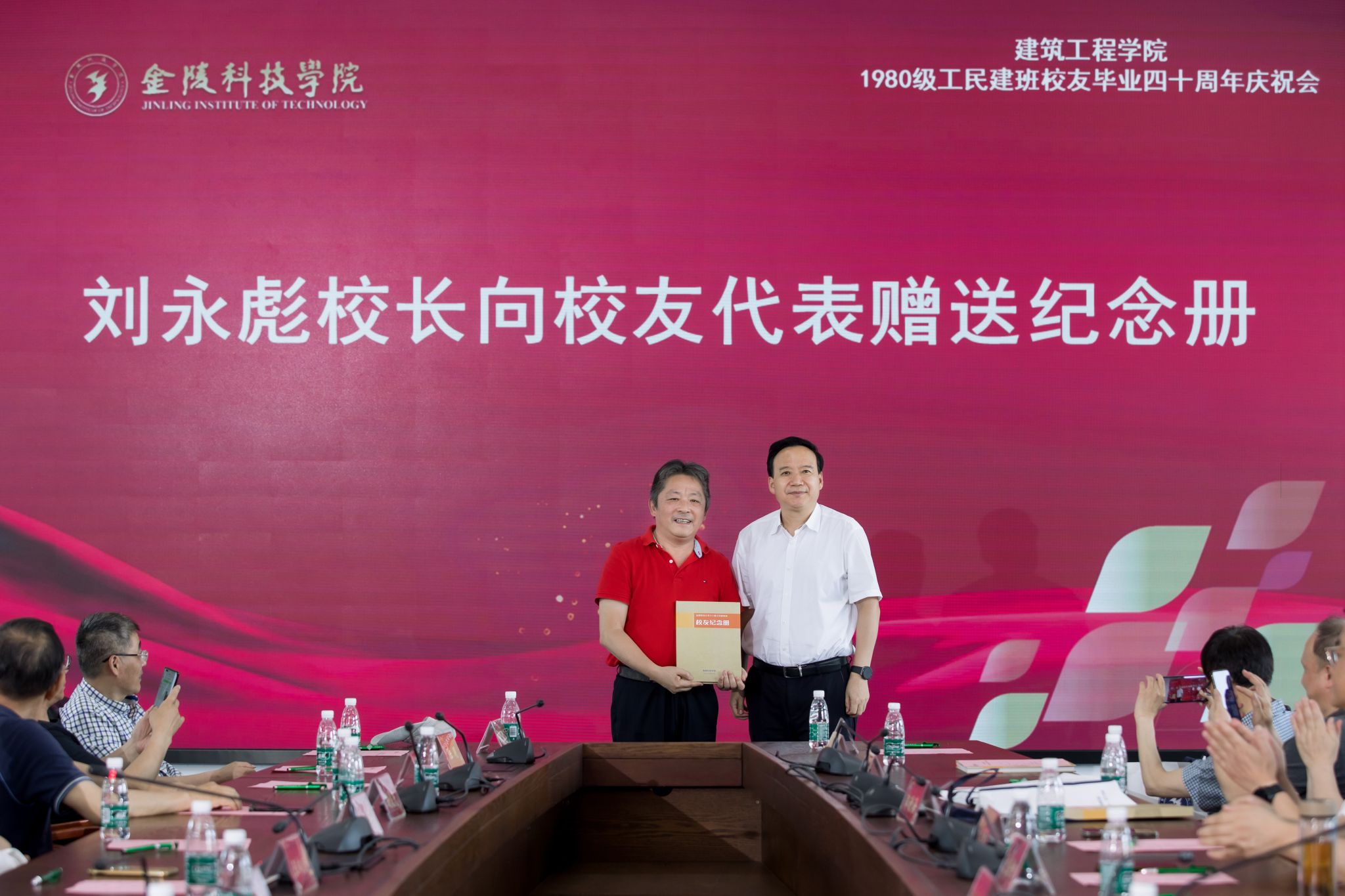 刘永彪对1980级工民建班校友毕业四十周年返校表示热烈欢迎。他回顾了金陵职业大学成立之初,作为首届毕业生的1980级校友勤学笃行、高质量就业的辉煌历史;介绍了学校近年来的发展历程和建设成效。他表示,学校的发展离不开历届校友们的鼎力支持和帮助。当前,学校紧扣“两全”主题,坚持“两建”目标,深化“两化”战略,持续深化产教融合、科教融汇、校企合作,持续加强内涵建设,不断提升应用型人才培养质量,奋力推进特色鲜明的高水平新兴应用型大学建设。他希望各位校友能以今天的返校活动为契机,多联系、勤走动、常交流,一如既往地关心支持母校工作,凝心聚力助推母校高质量发展。