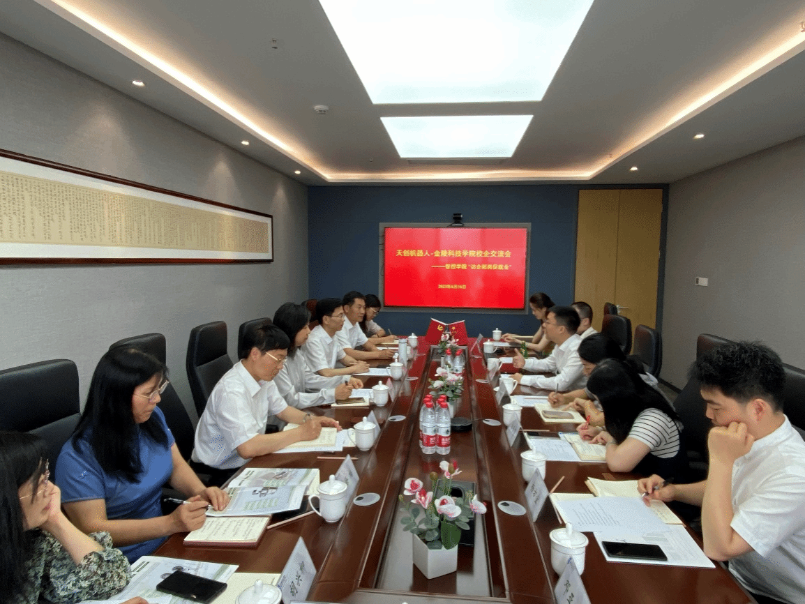 6月16日,球王会与南京天创电子技术有限公司共建的江苏省研究生工作站授牌暨访企拓岗促就业活动在南京天创电子技术有限公司总部举行。副校长叶智锐及研究生处、智能科学与控制工程学院相关负责人,机器人工程专业负责人及骨干教师;南京天创电子技术有限公司总经理刘爽及总经理助理刘旦复、人力资源部总监谢凤燕、科技管理部副总监宣蕾蕾等出席活动。