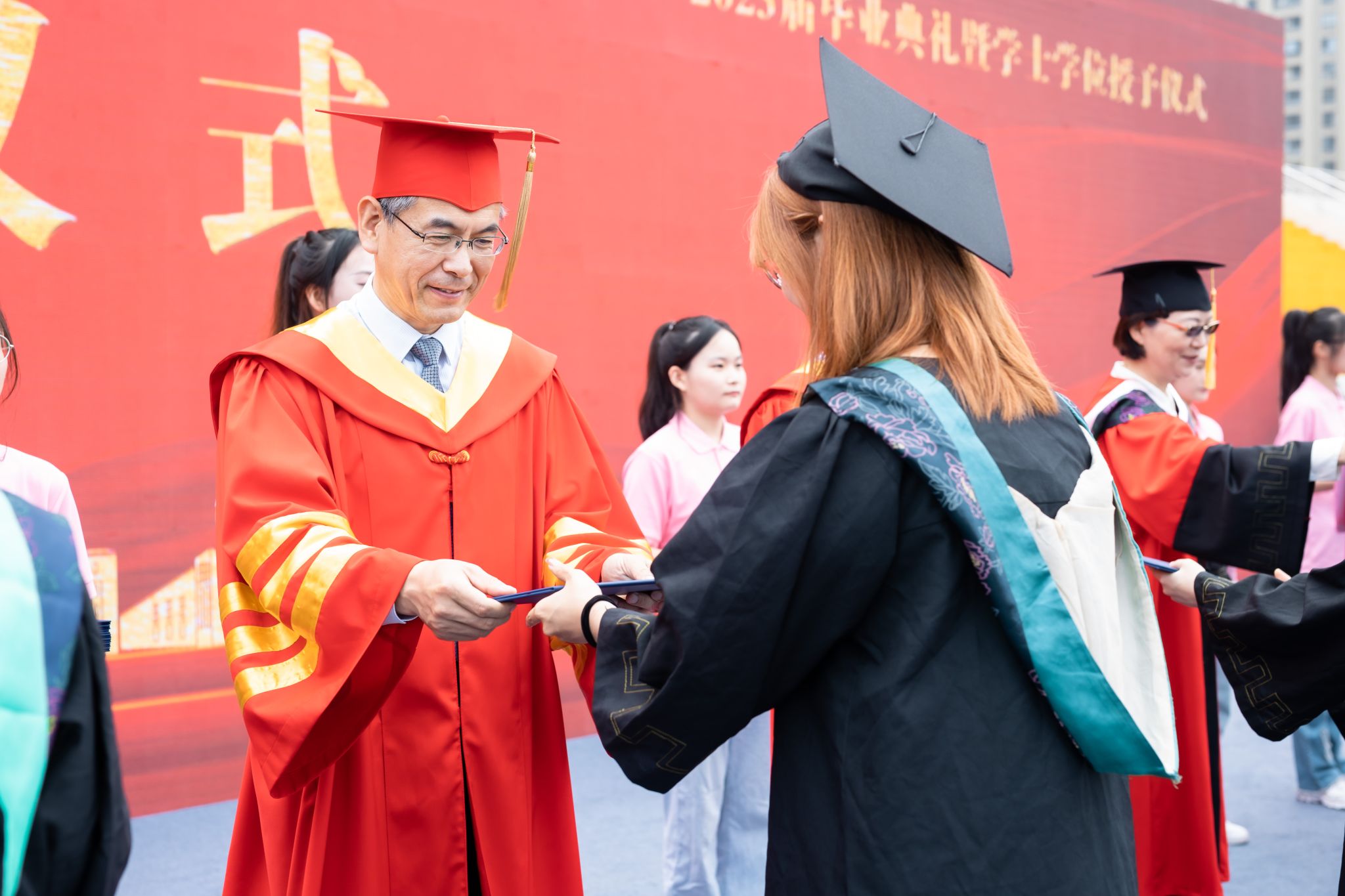 全体校领导为2023届毕业生行拨穗礼