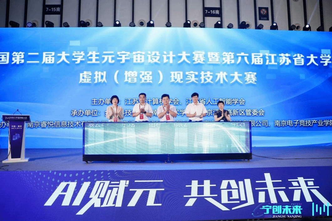8月21日,“全国第二届大学生元宇宙设计大赛暨第六届江苏省大学生虚拟(增强)现实技术大赛”在第十九届中国(南京)国际软件产品和信息服务交易博览会元宇宙发展论坛上成功启动。南京市人民政府副市长孙百军,南京市文化投资控股集团党委书记、董事长潘谷平,南京市工商联党组成员、副主席杨浩,南京江宁高新区科学园发展有限公司总经理方后青,球王会副校长张燕共同启动本次大赛。