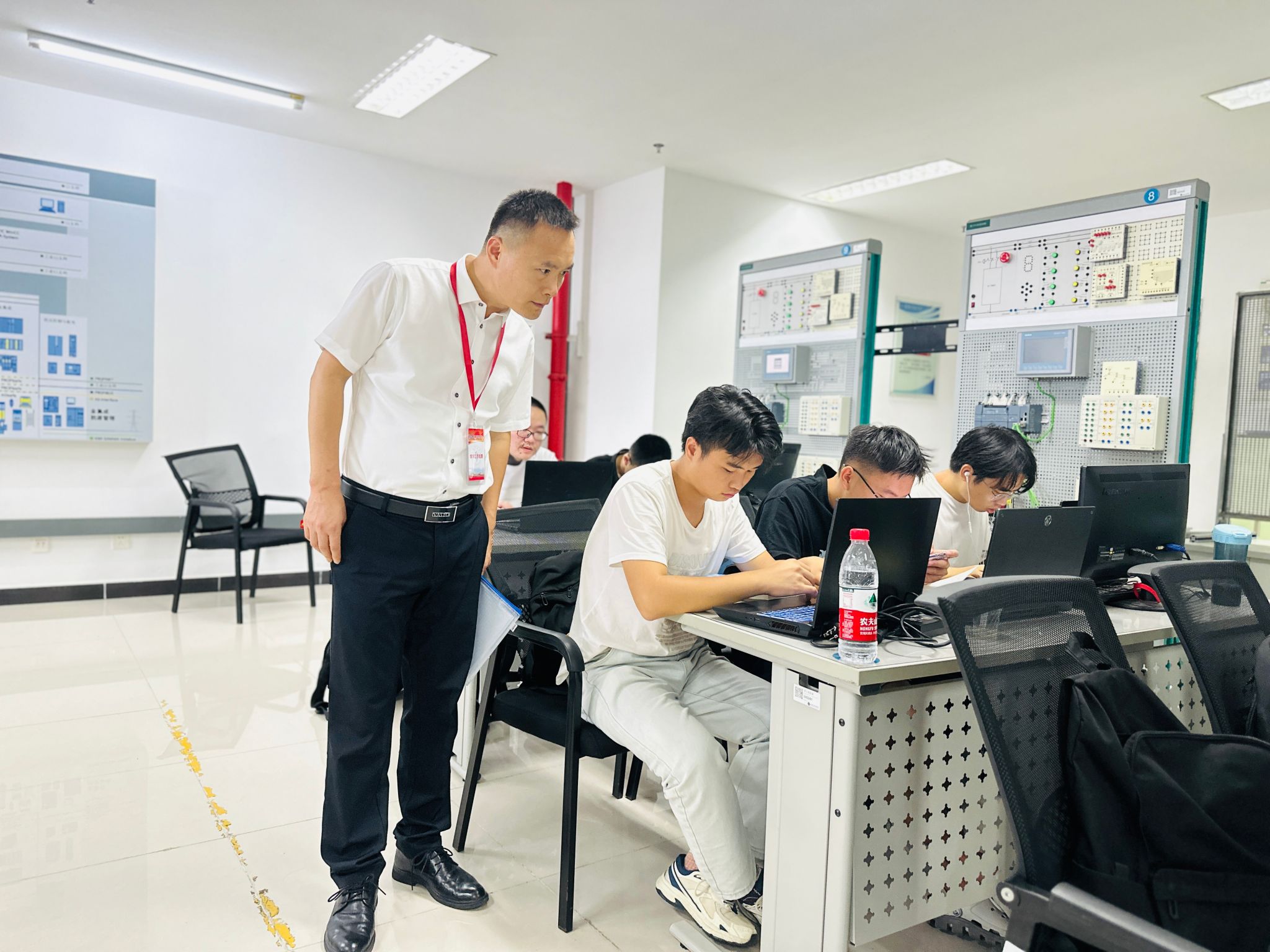 校长刘永彪巡查教学设备运行情况